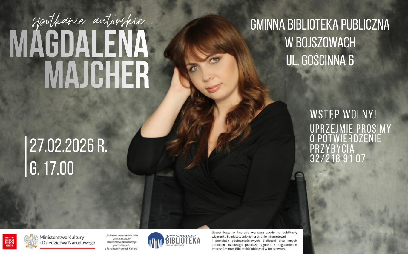 Aktualności Maluch w bibliotece i bal przebierańców 2026-02-05 2026-02-09 Czytaj dalej Maluch w bibliotece i bal przebierańców 2026-02-03 2026-02-05 Grupa maluszków z Filii w Bojszowach Nowych Czytaj dalej Bojszowska kraina snów 2026-01-28 2026-01-28 42 lata temu dwie amerykańskie telewizje zrobiły reportaże o Józefie… Czytaj dalej Maluch w bibliotece i pingwinek 2026-01-23 2026-01-26 Zajęcia w filii w Bojszowach Nowych Czytaj dalej Maluch w bibliotece i pingwinek 2026-01-22 2026-01-23 Czytaj dalej Wyszukaj na stronie w katalogu Nasze ProjektyProjektyBojszowska kraina snówMaluch w biblioteceMKiDNDyskusyjny klub książkiPartnerstwo dla książkiZakup nowości wydawniczychPartnerzy