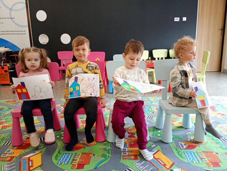 Wspólna zabawa, czytanie książki, zabawy ruchowe i praca plastyczno – techniczna to główne elementy naszych cotygodniowych spotkań.