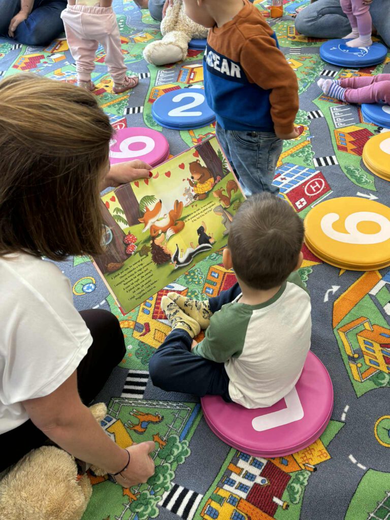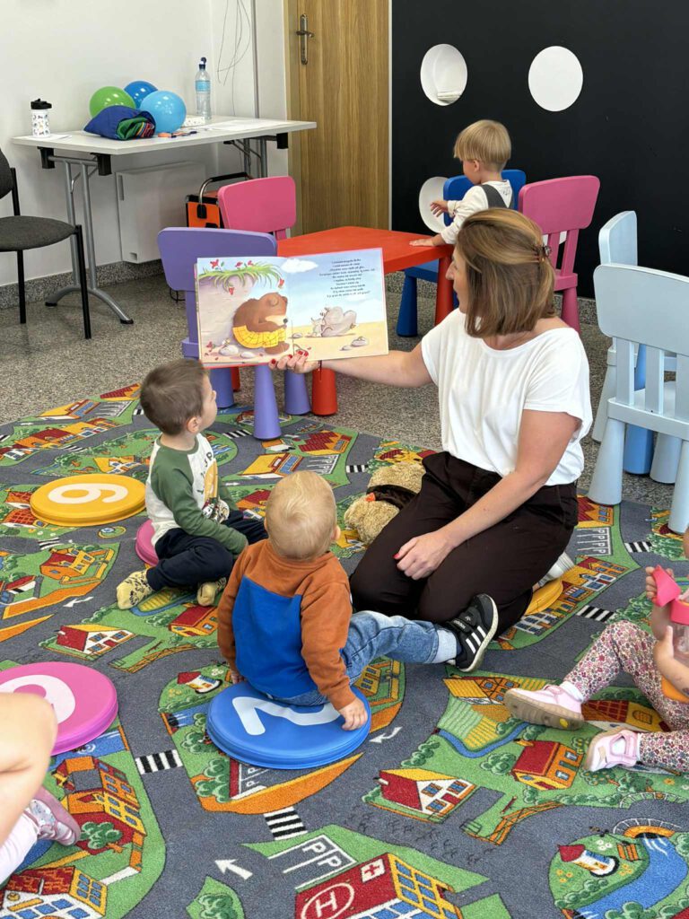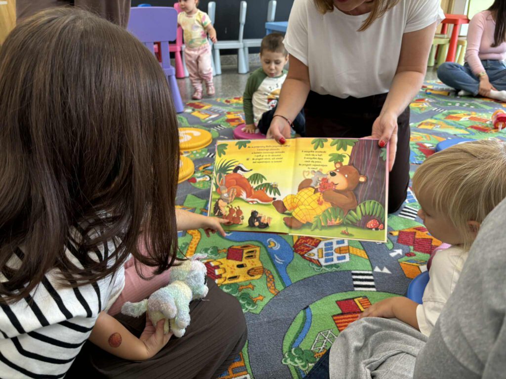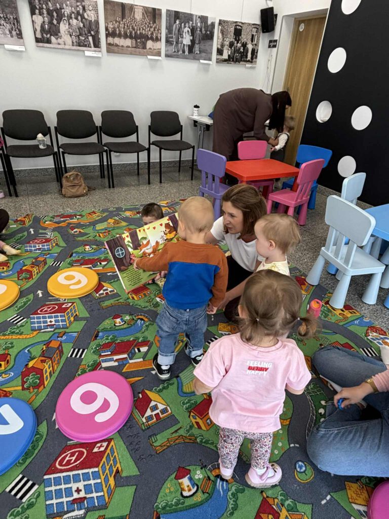 Maluch w bibliotece i miś