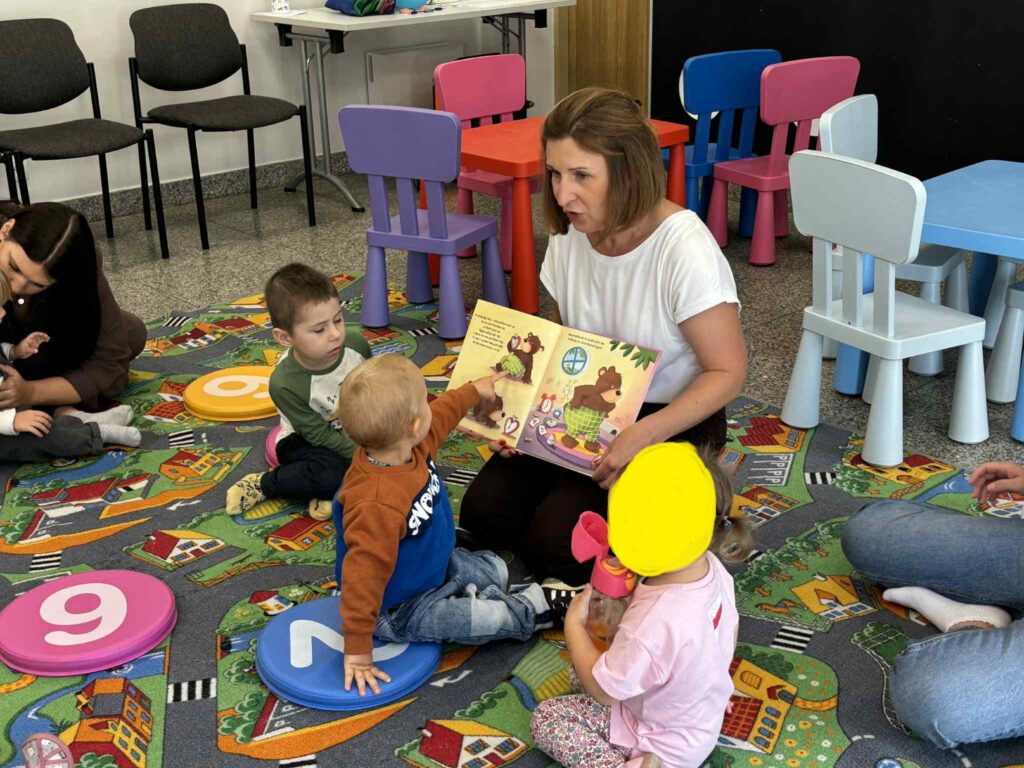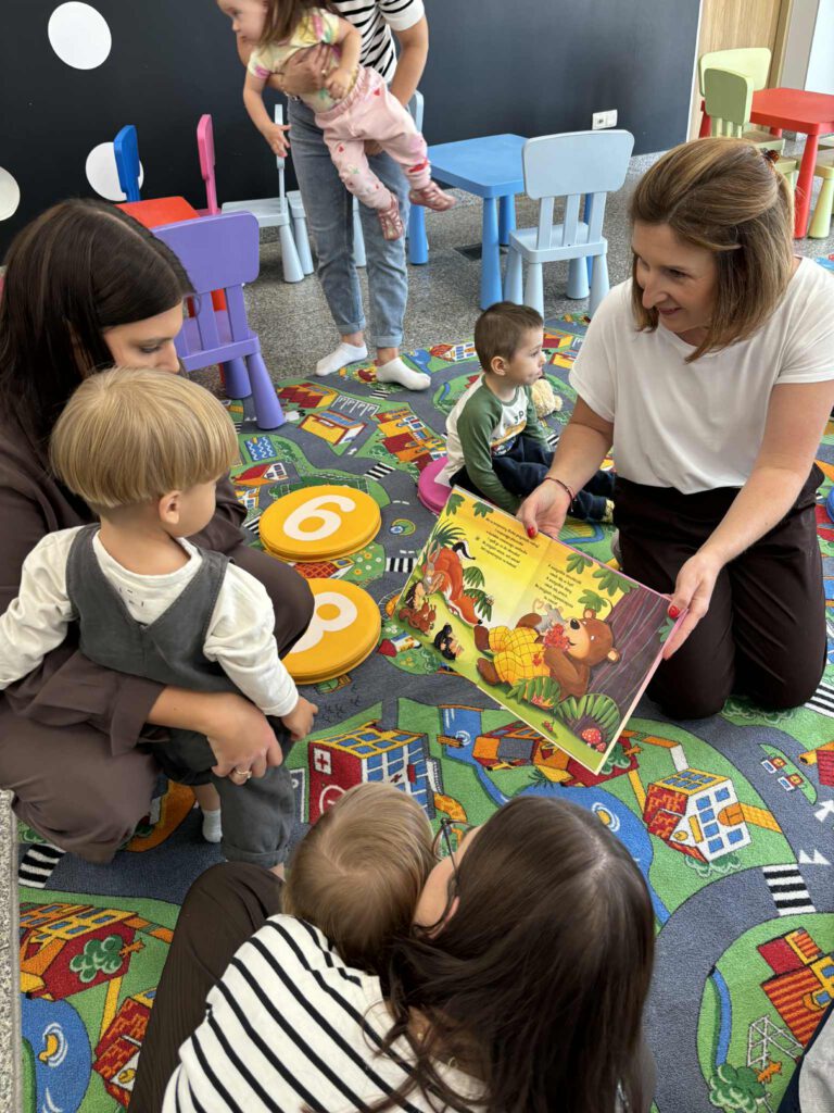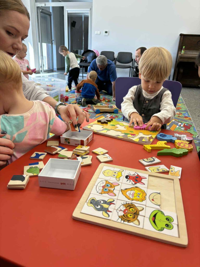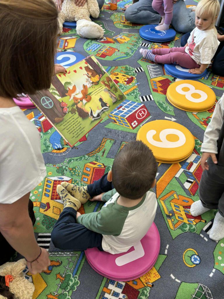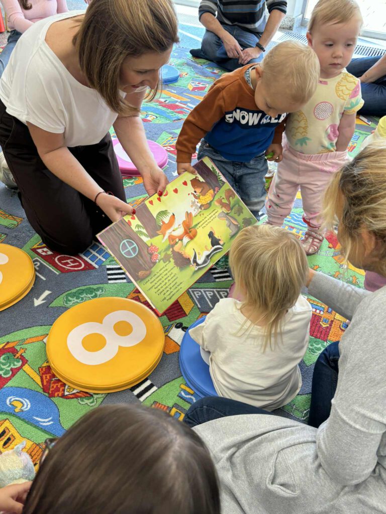 Maluch w bibliotece i miś
