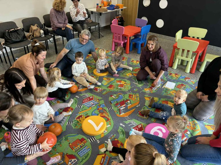Maluch w bibliotece i dynia