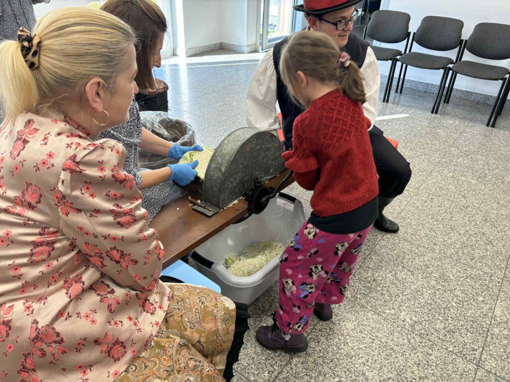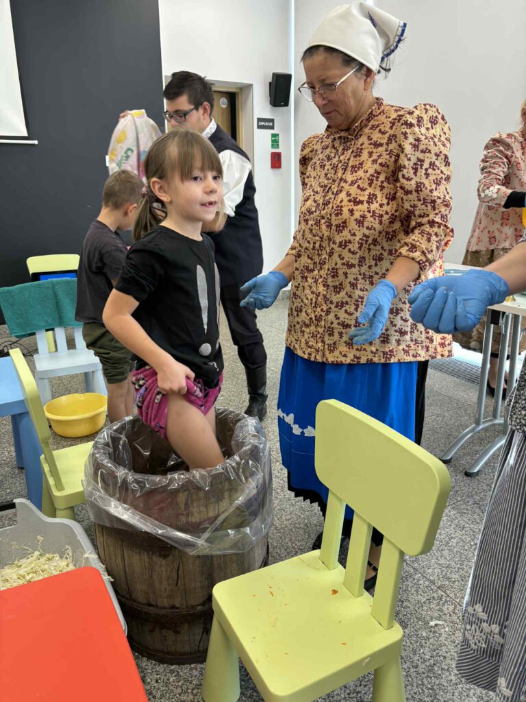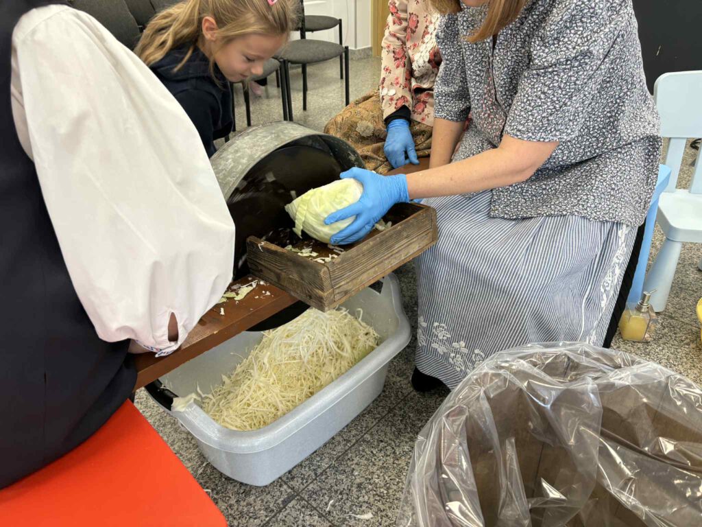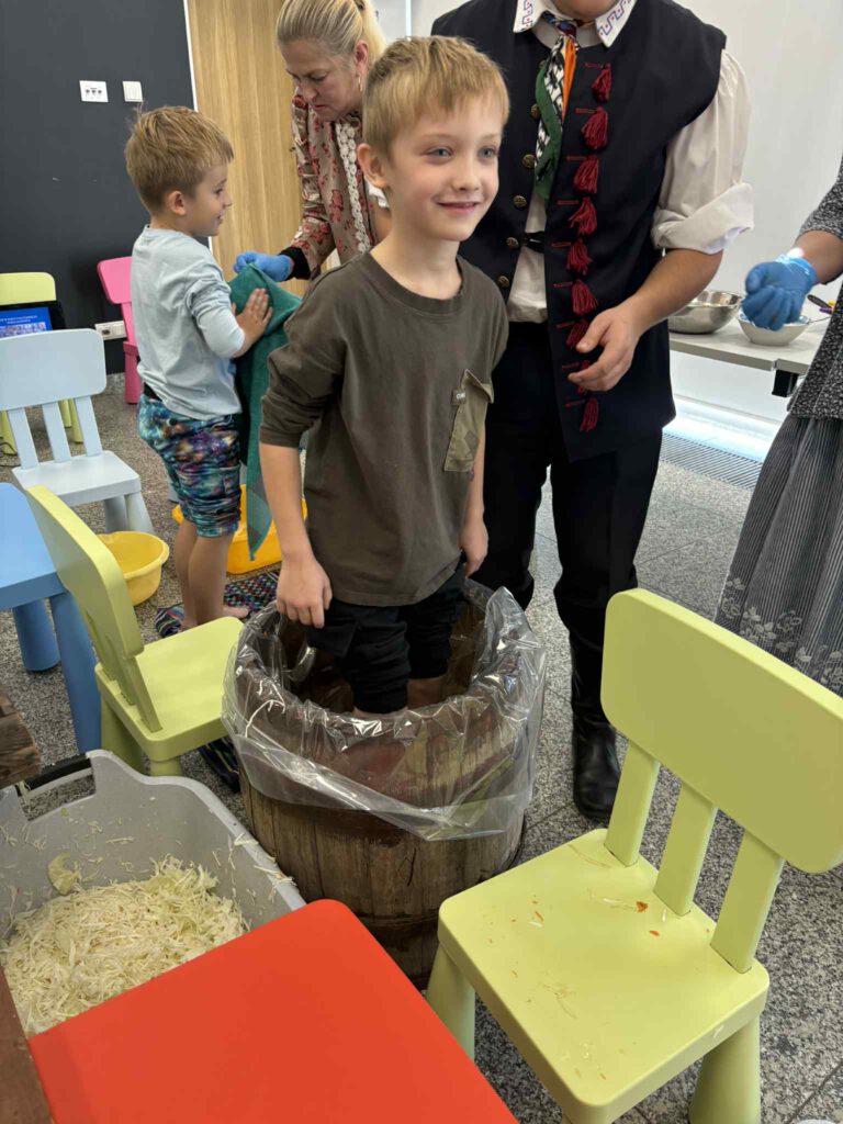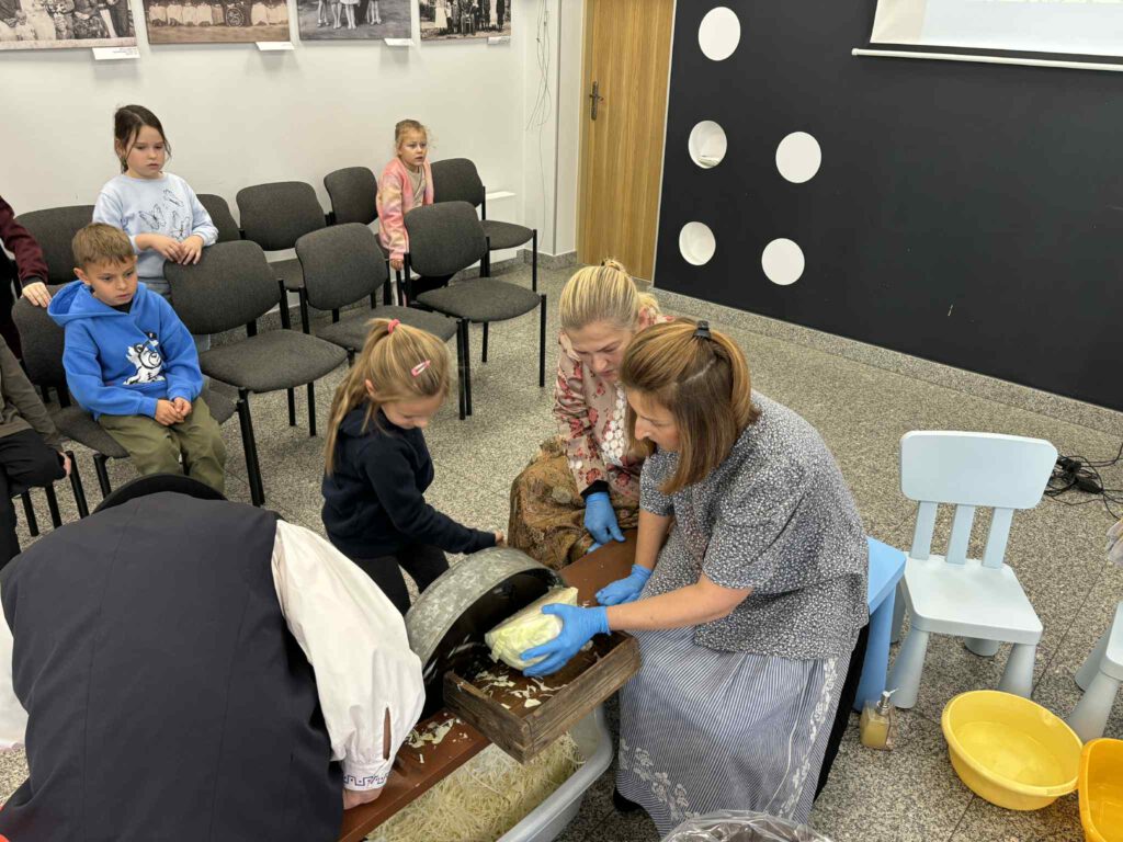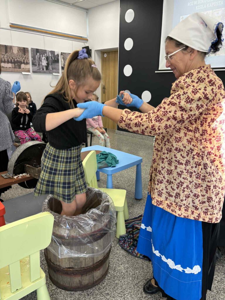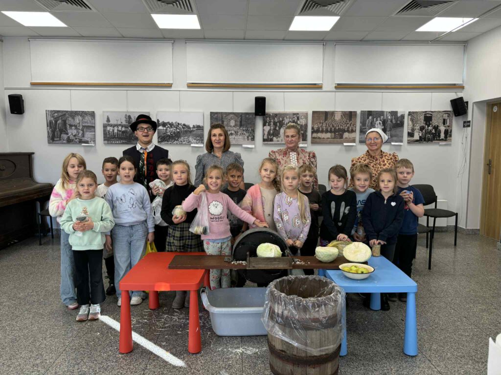 Śląskie poranki u Kaśki i Hanki – kiszynie kapusty Opublikowano 2025-10-202025-10-20 W warsztatach udział wzięli pierwszoklasiści z klasy Ia ze Szkoły Podstawowej im. W. Gawlikowicza w Bojszowach
