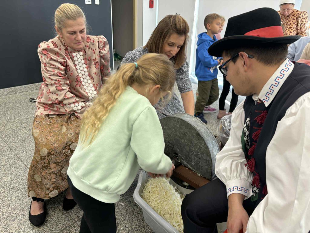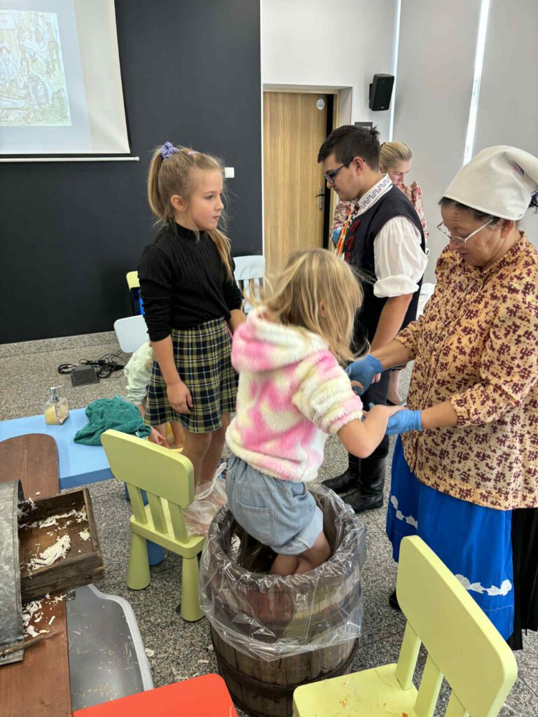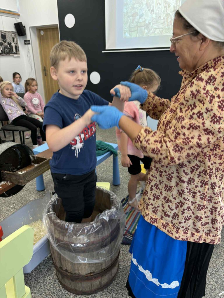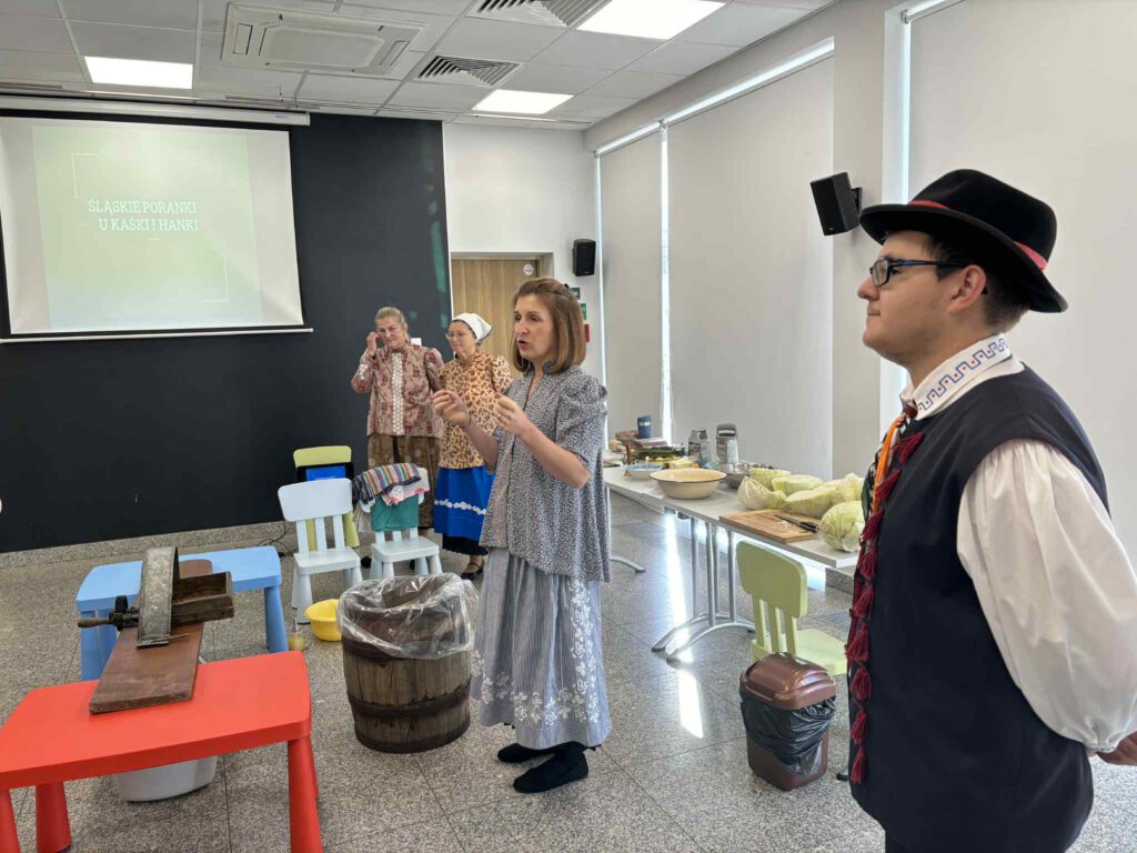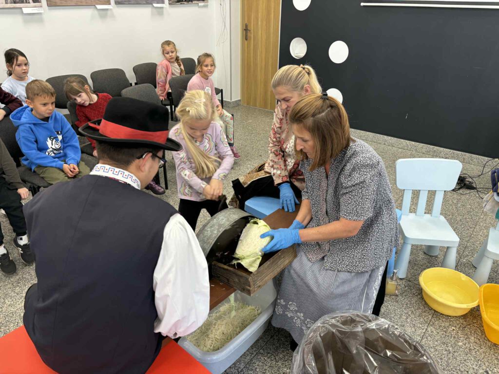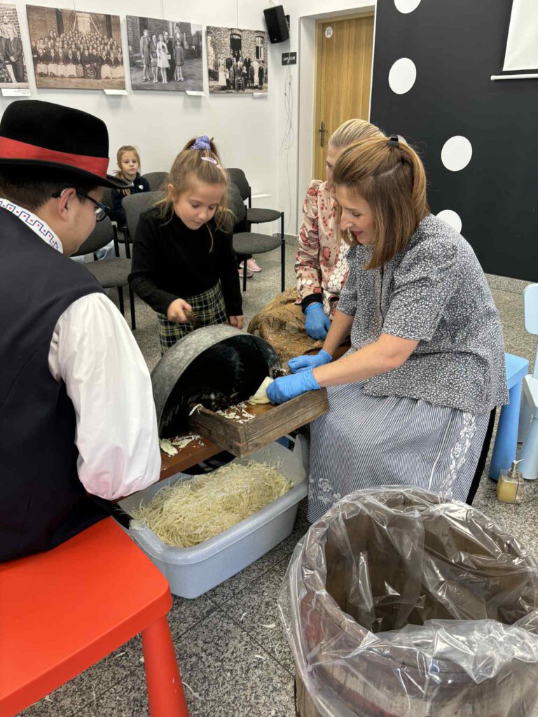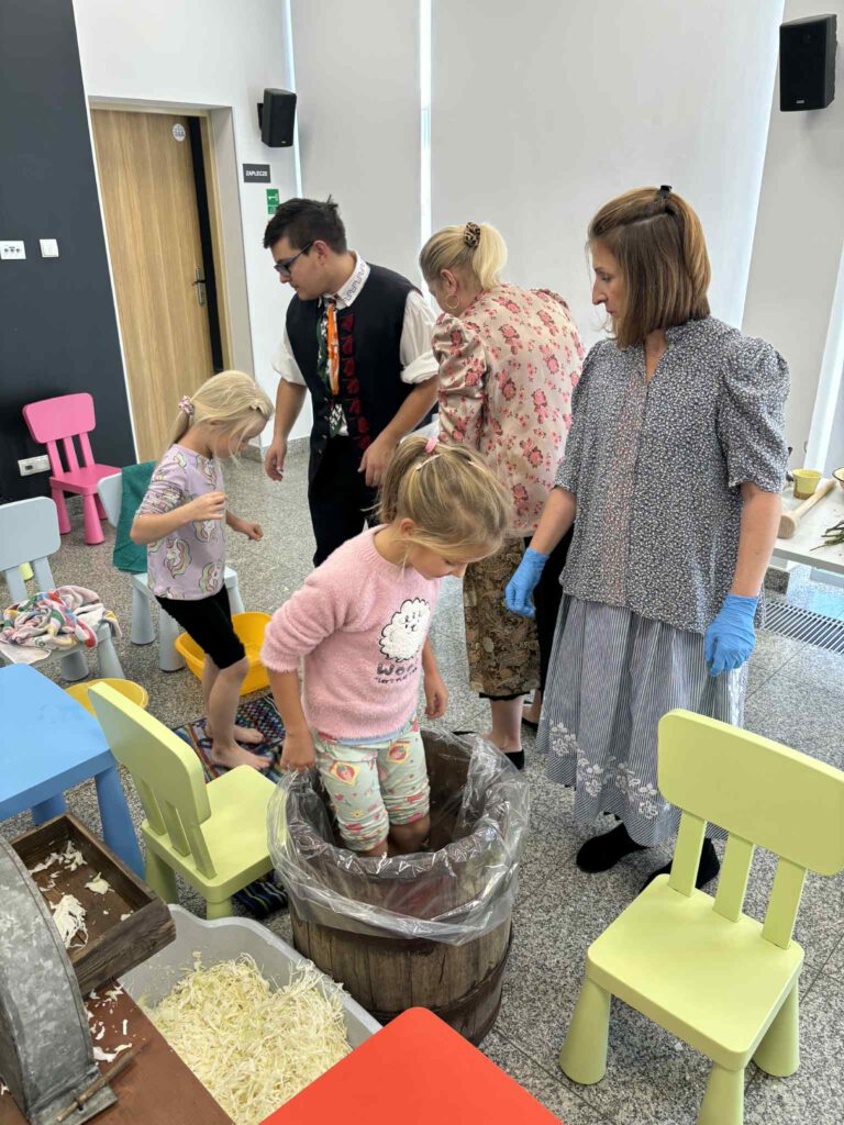 Śląskie poranki u Kaśki i Hanki – kiszynie kapusty Opublikowano 2025-10-202025-10-20 W warsztatach udział wzięli pierwszoklasiści z klasy Ia ze Szkoły Podstawowej im. W. Gawlikowicza w Bojszowach