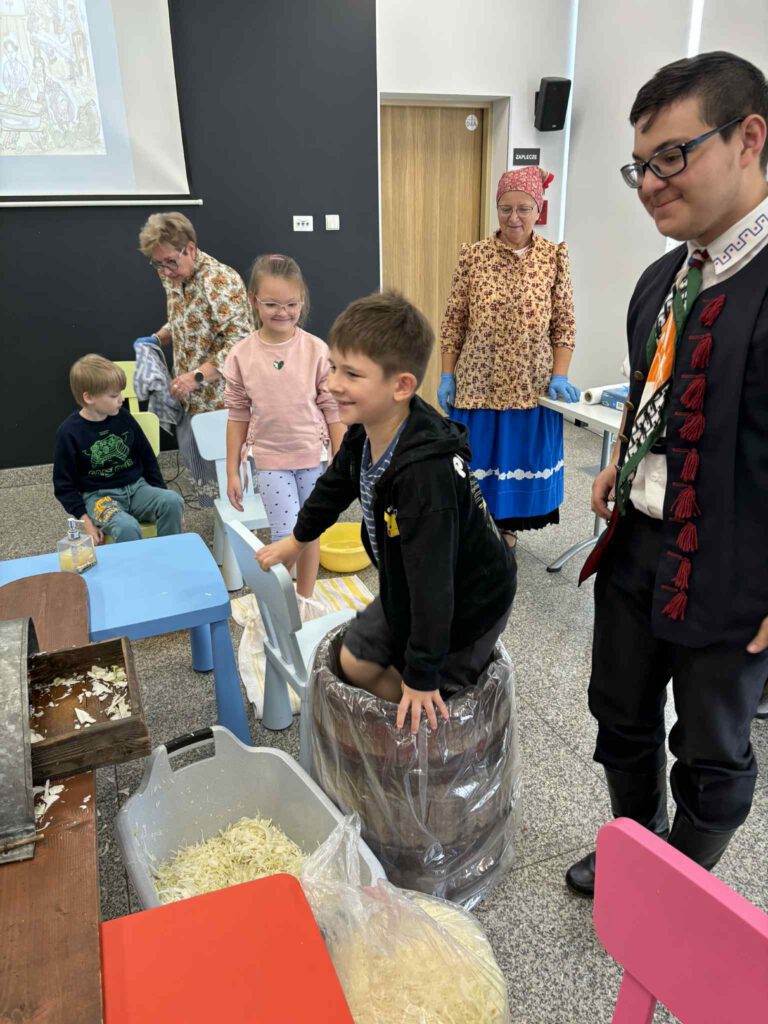 Śląskie poranki u Kaśki i Hanki – kiszynie kapusty Opublikowano 2025-10-222026-01-07 Szkoła Podstawowa im. W. Gawlikowicza klasa Ic i Zespół Folklorystyczny „Bojszowianie”