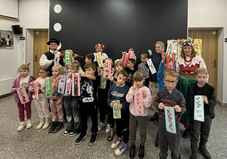 Malowanie szlajfek z uczniami z klasy Ia z Gminnej Szkoły Podstawowej w Świerczyńcu i z Zespołem Folklorystycznym „Bojszowianie”.