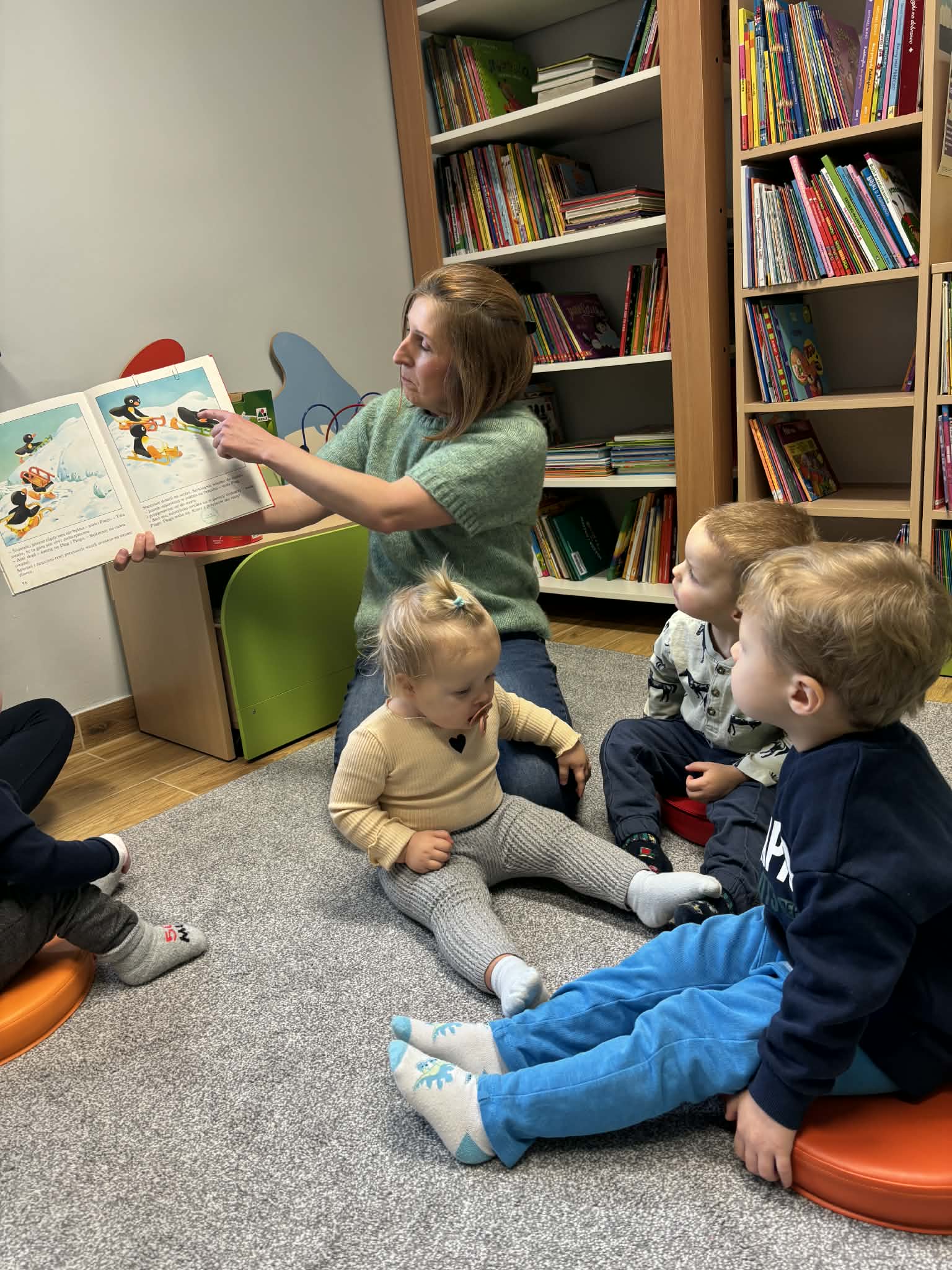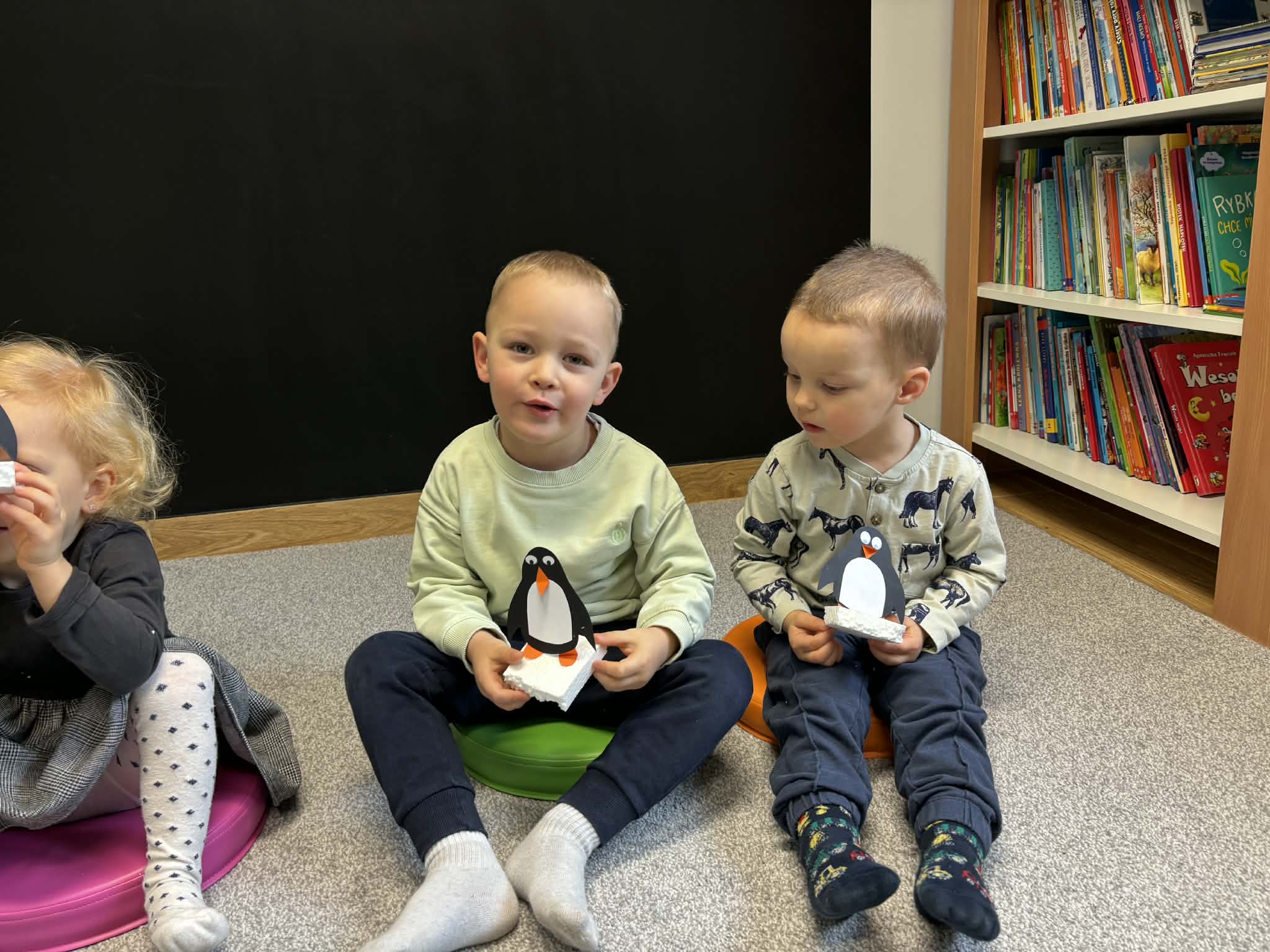 Maluch w bibliotece i pingwinek Opublikowano 2026-01-232026-01-26 Zajęcia w filii w Bojszowach Nowych