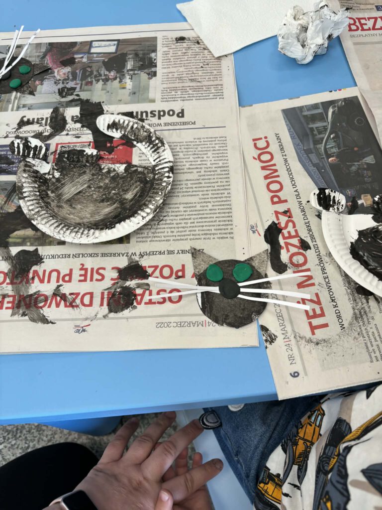 Maluch w bibliotece i kotek