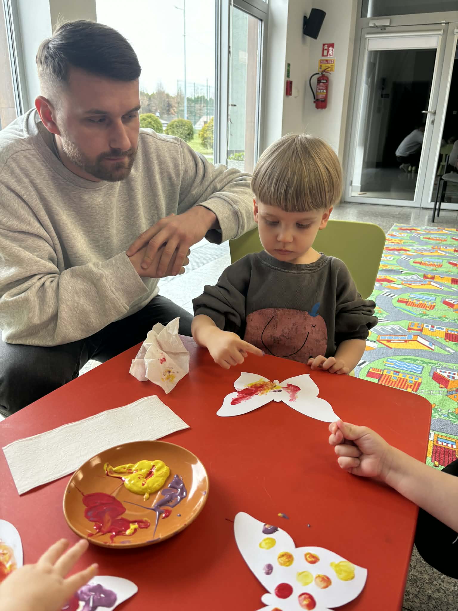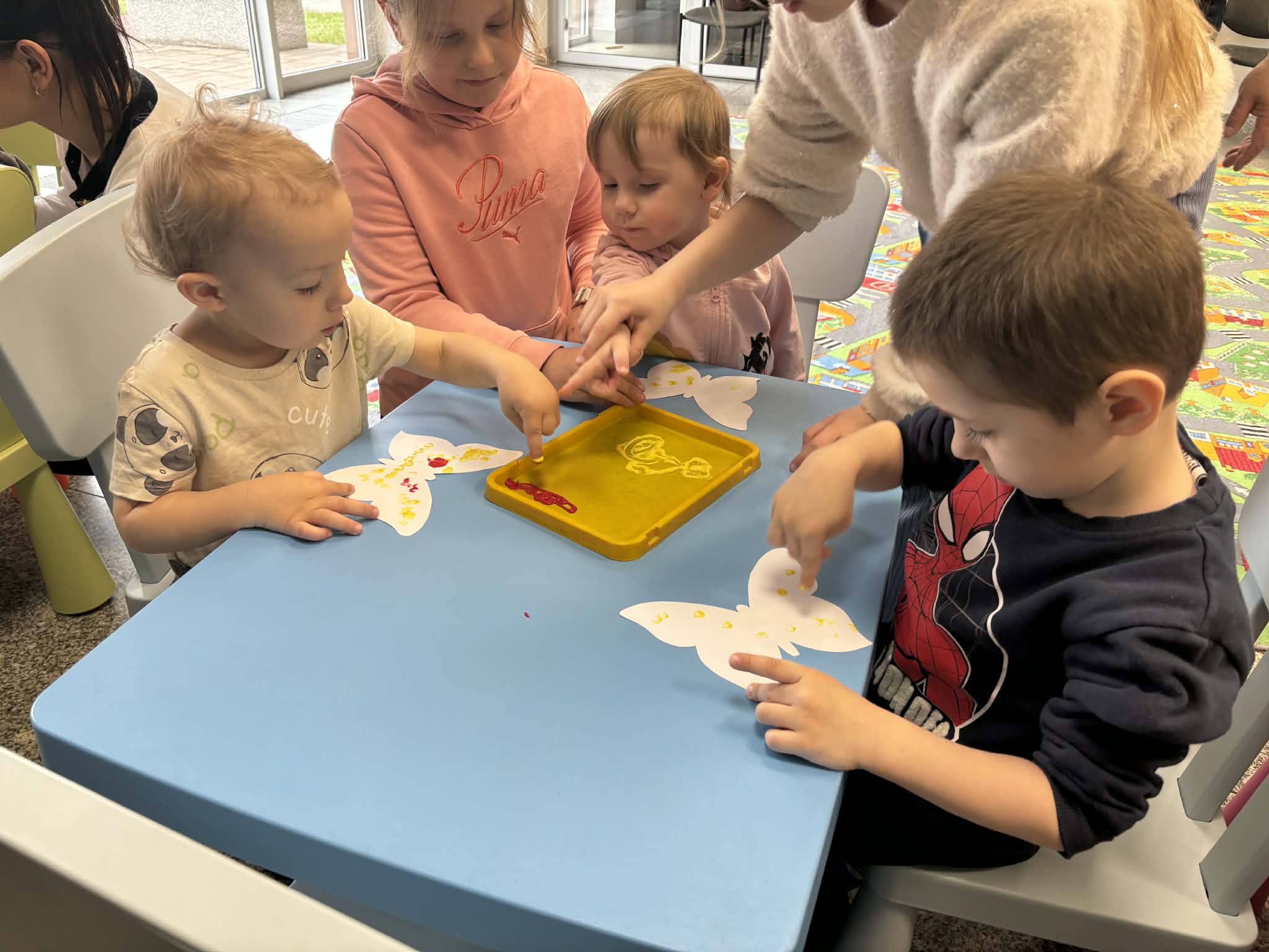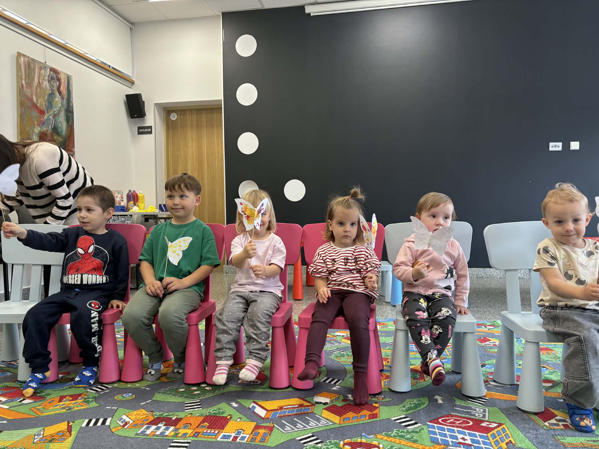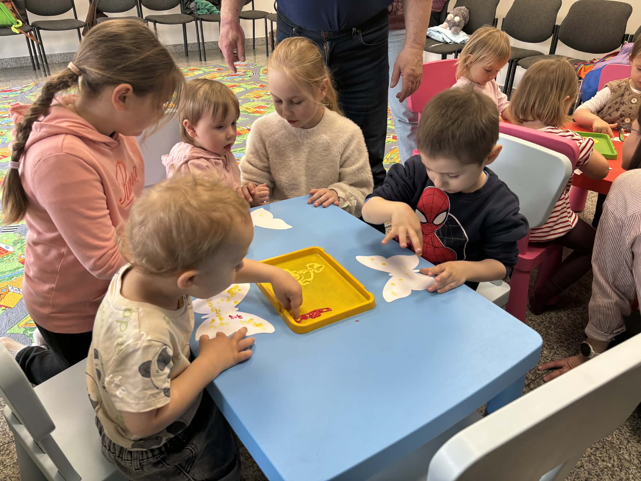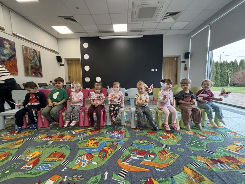 Maluch w bibliotece i motylek