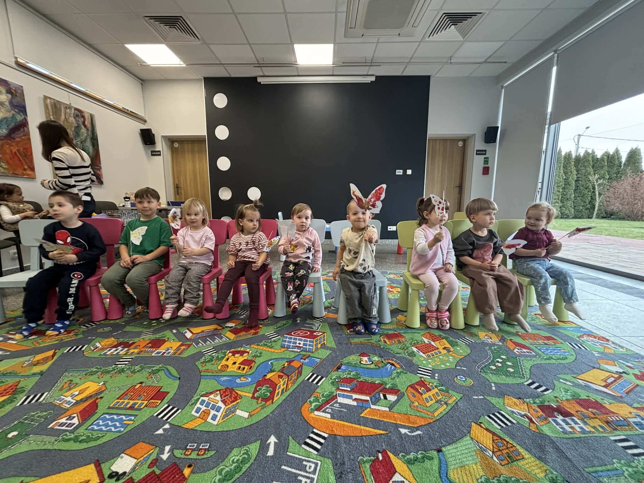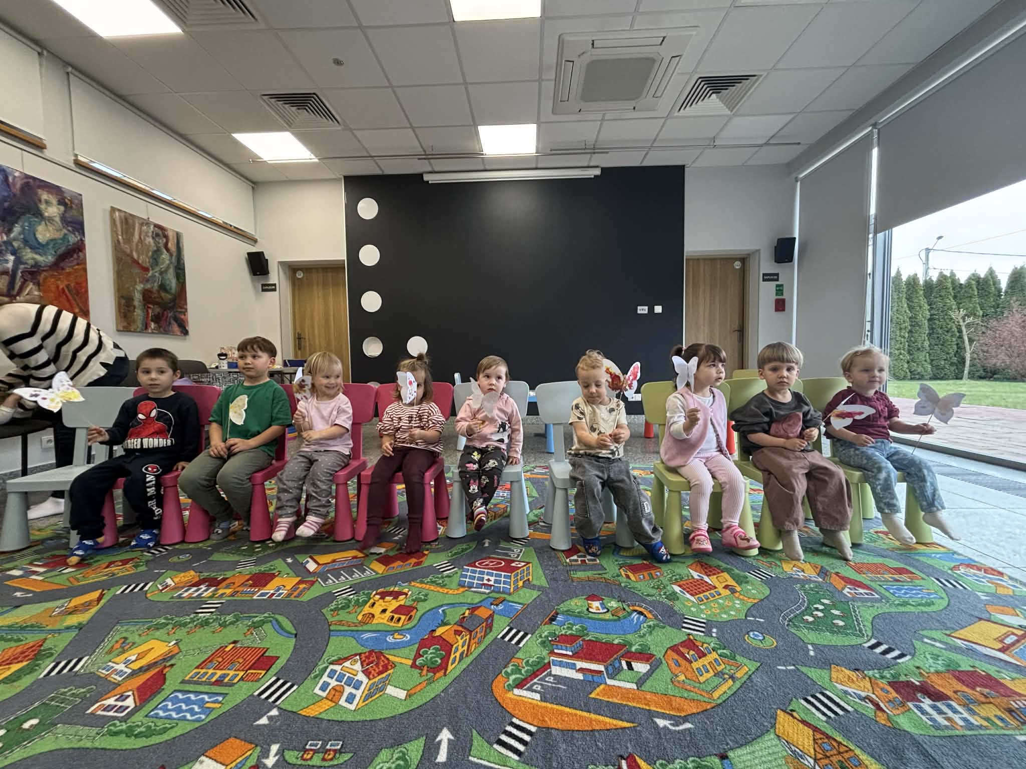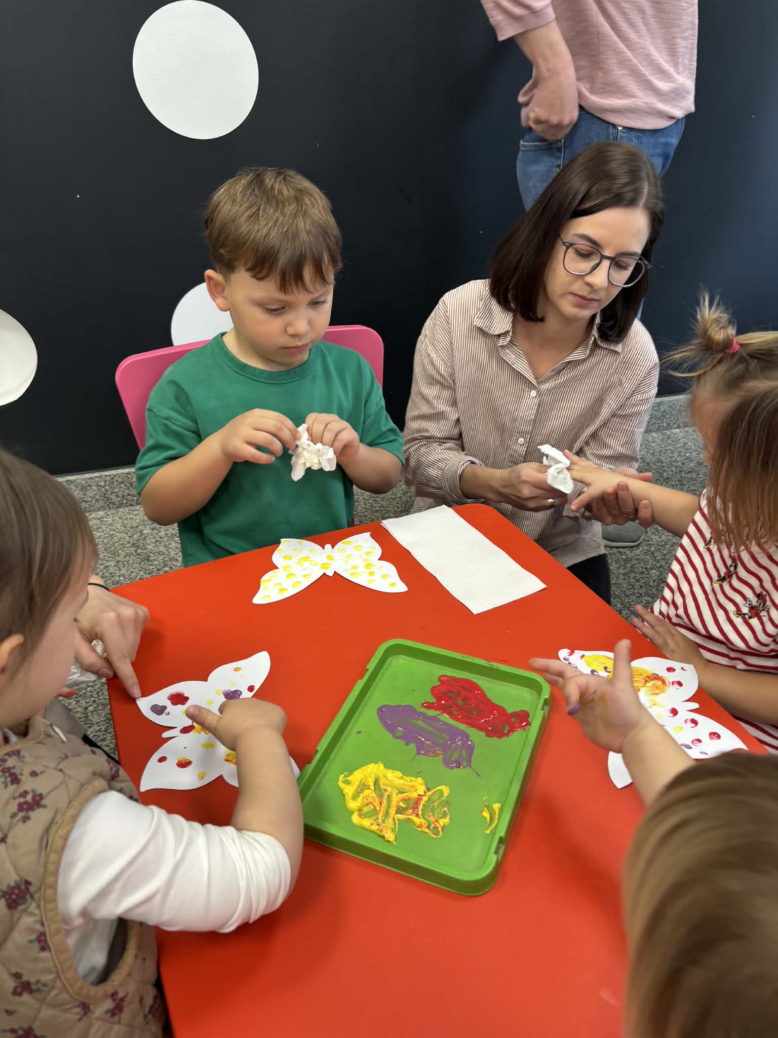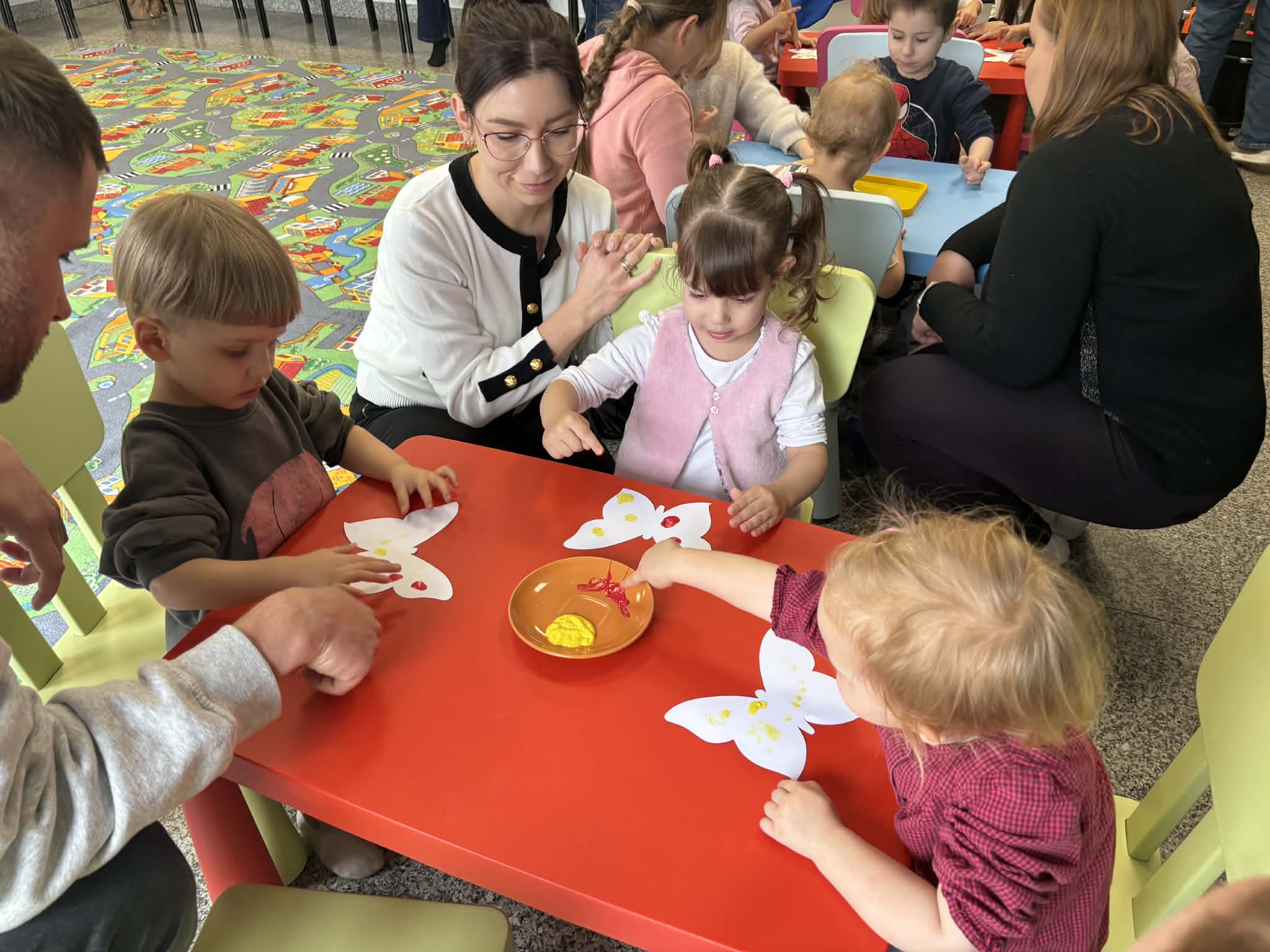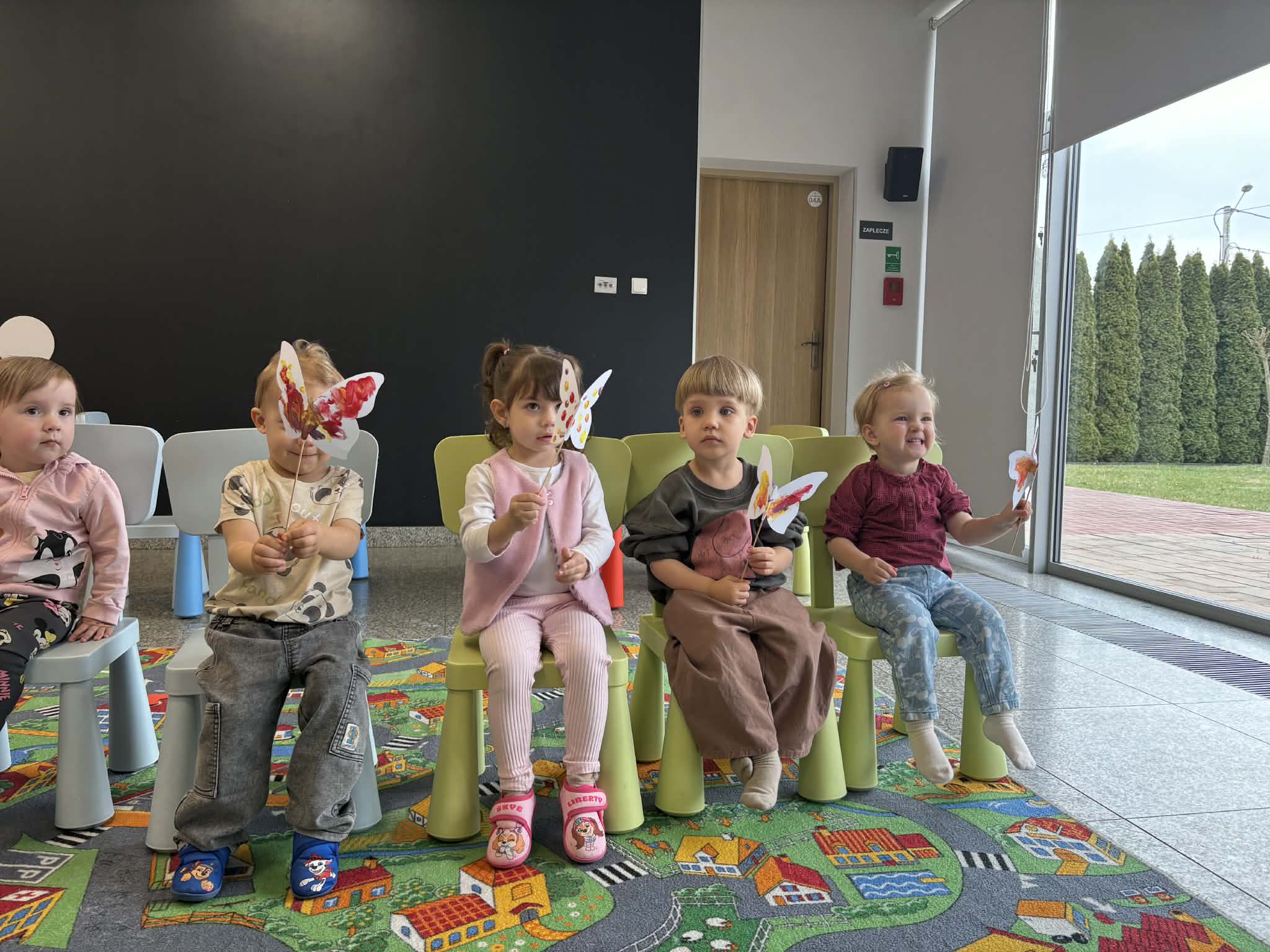 Maluch w bibliotece i motylek
