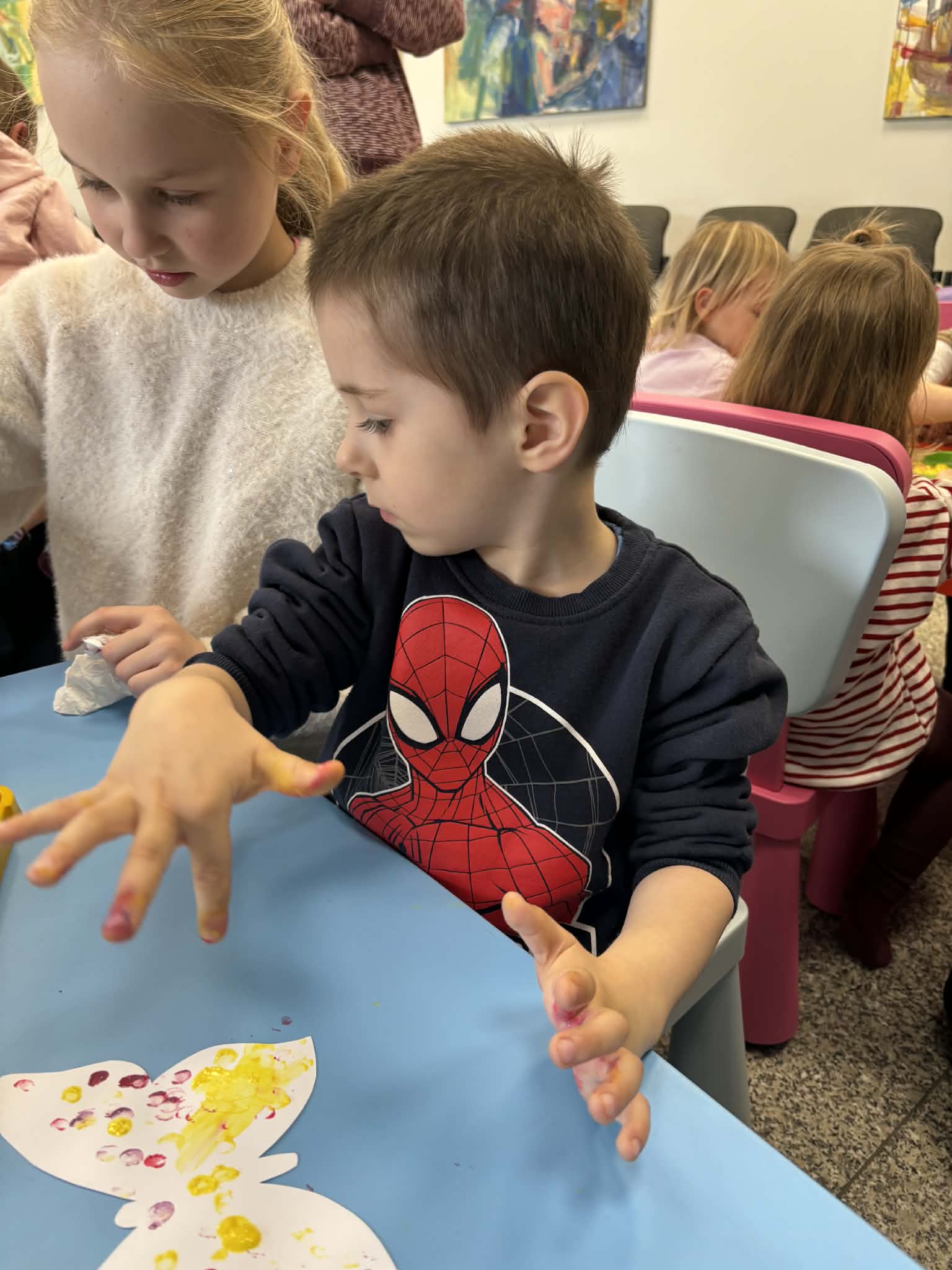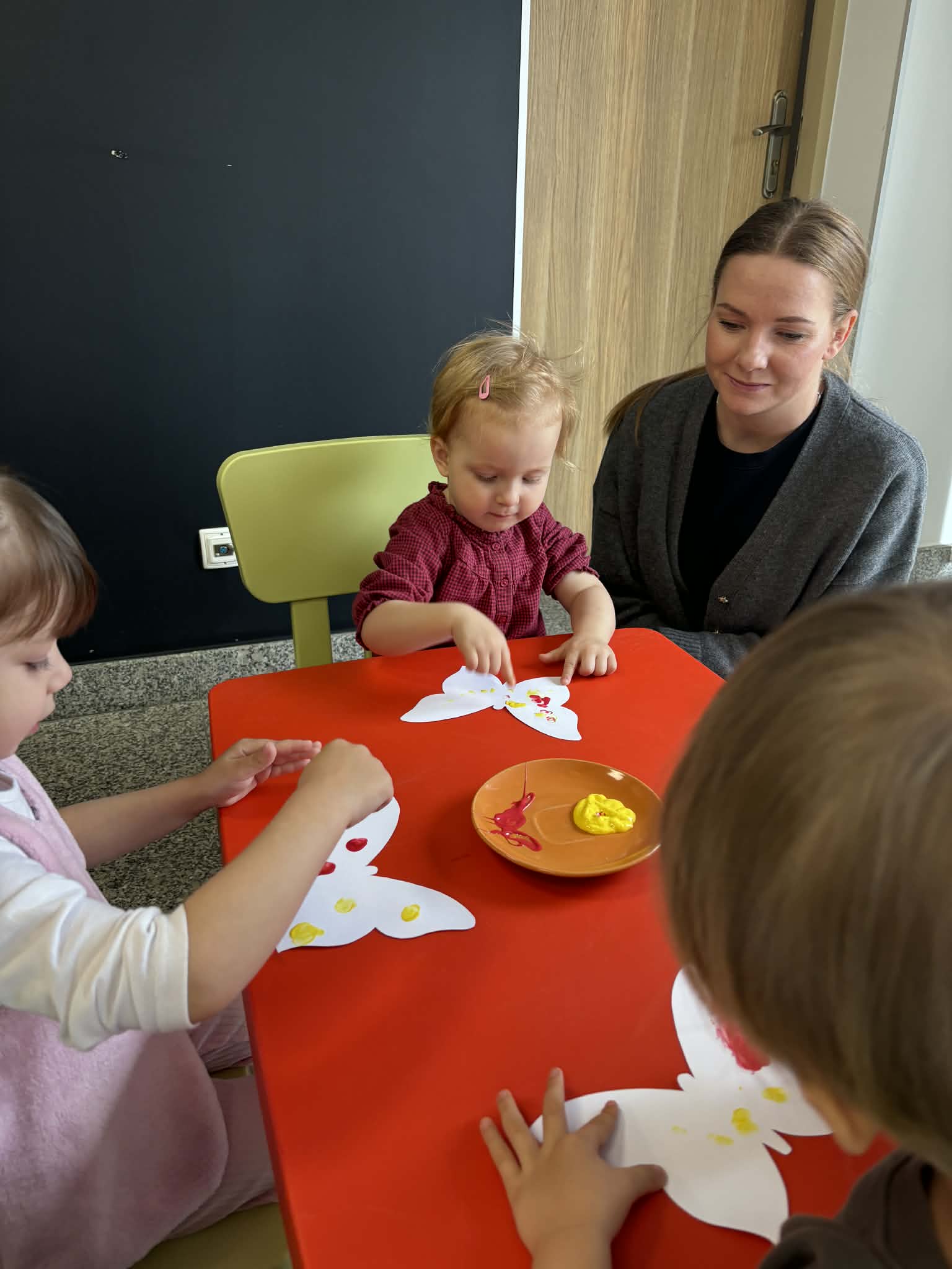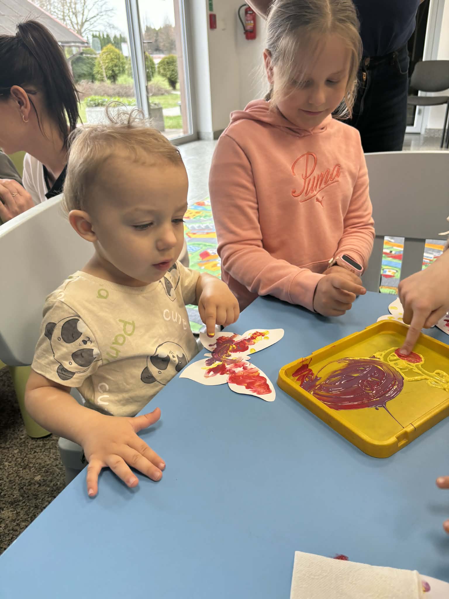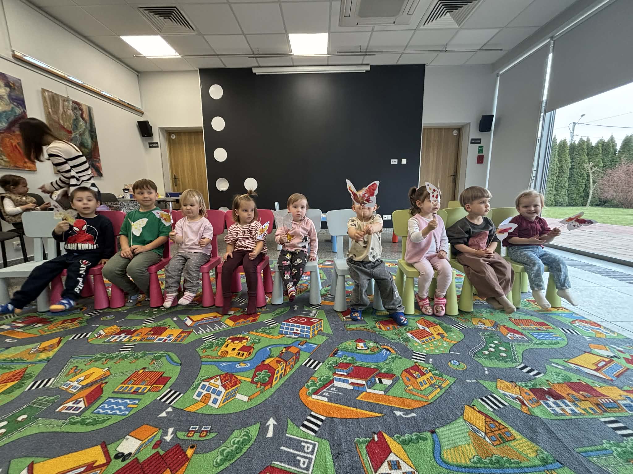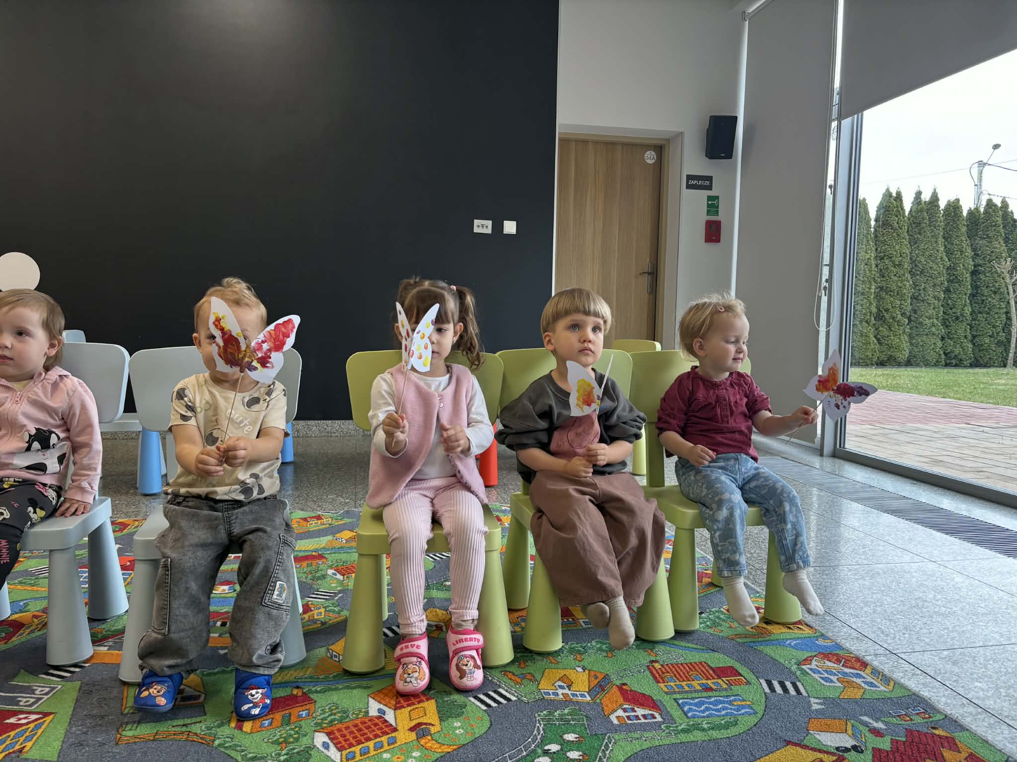 Maluch w bibliotece i motylek