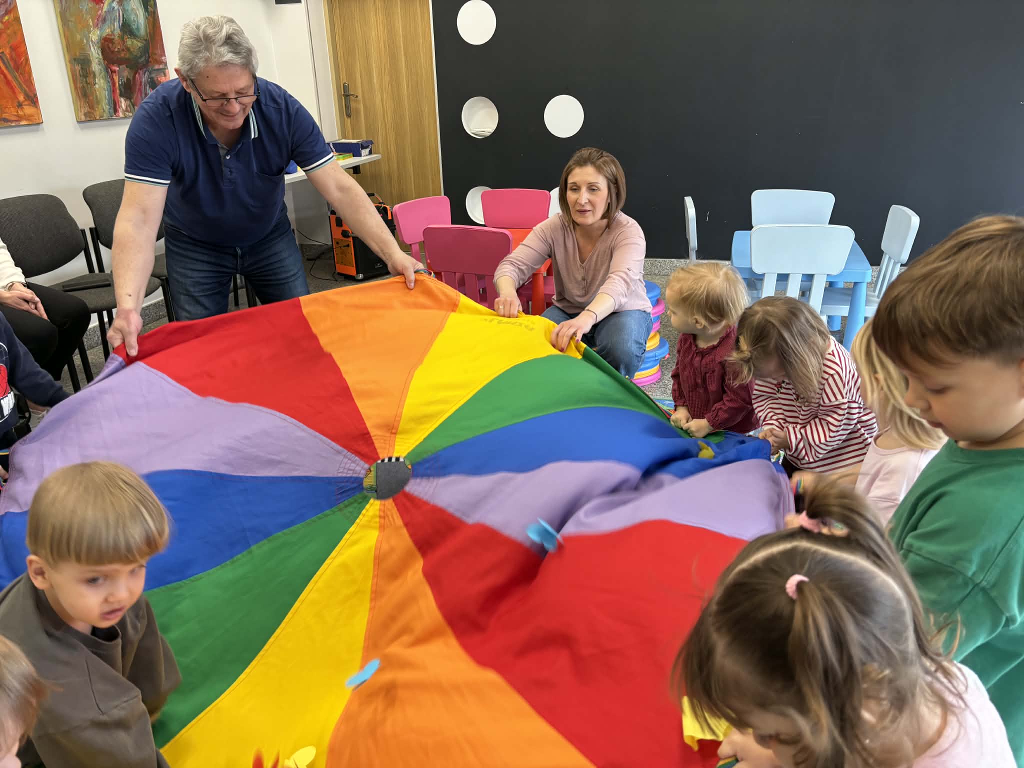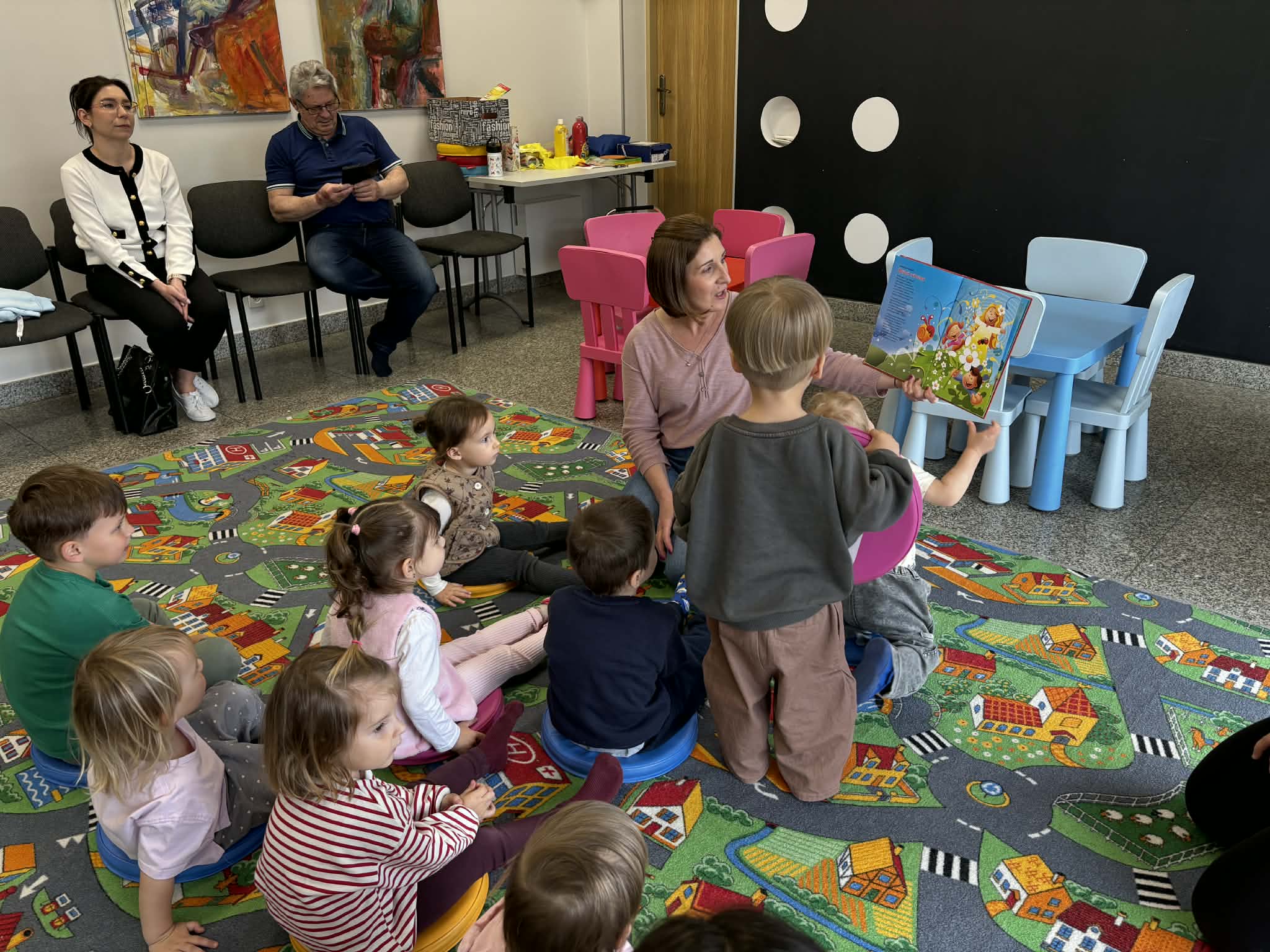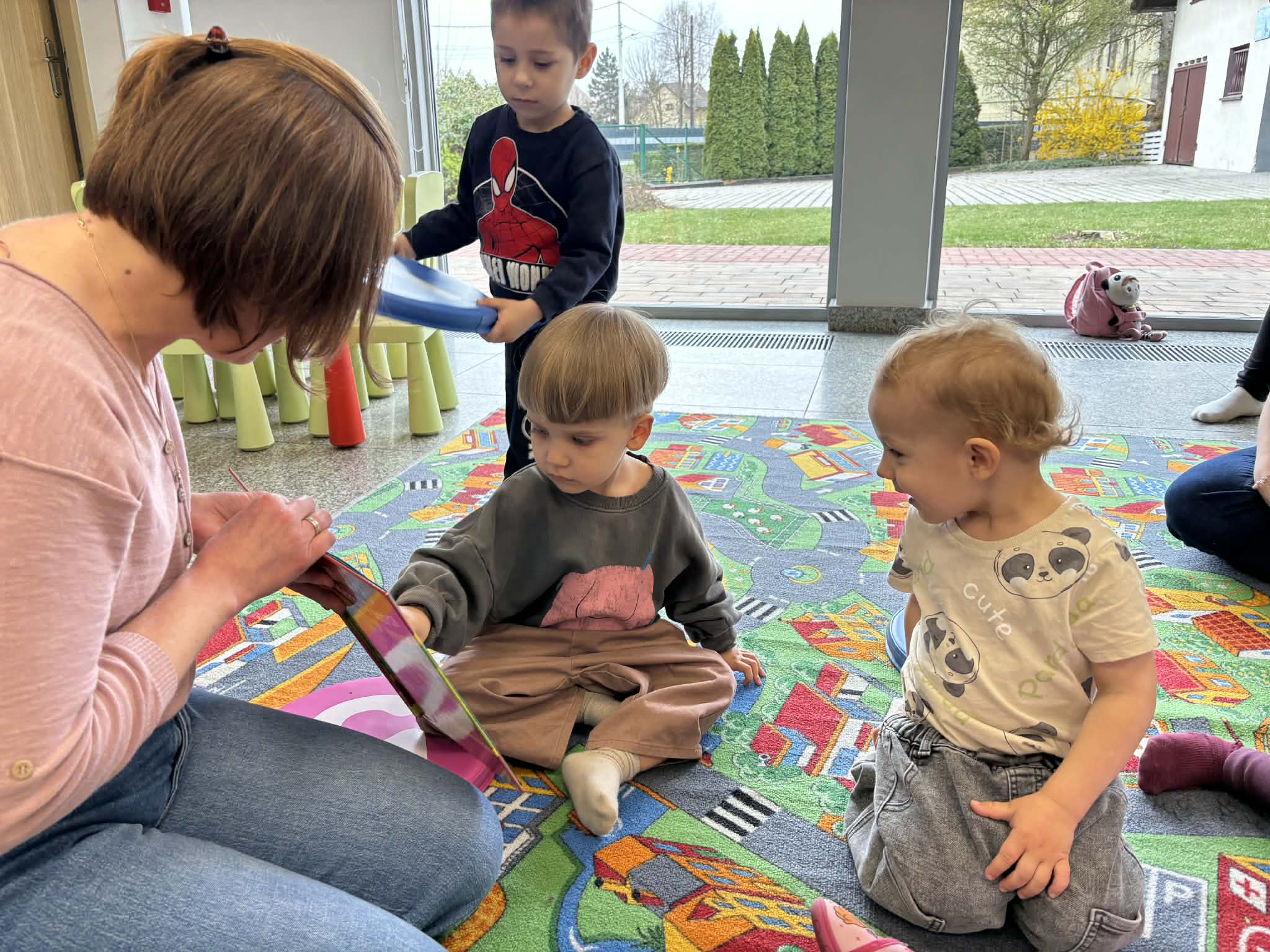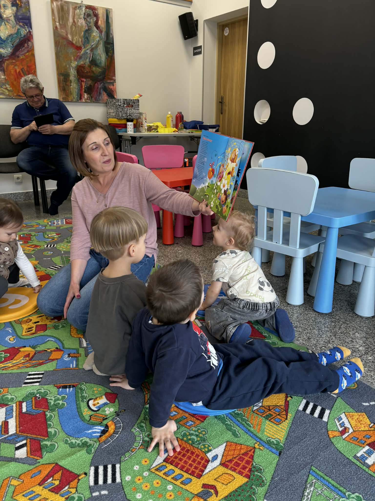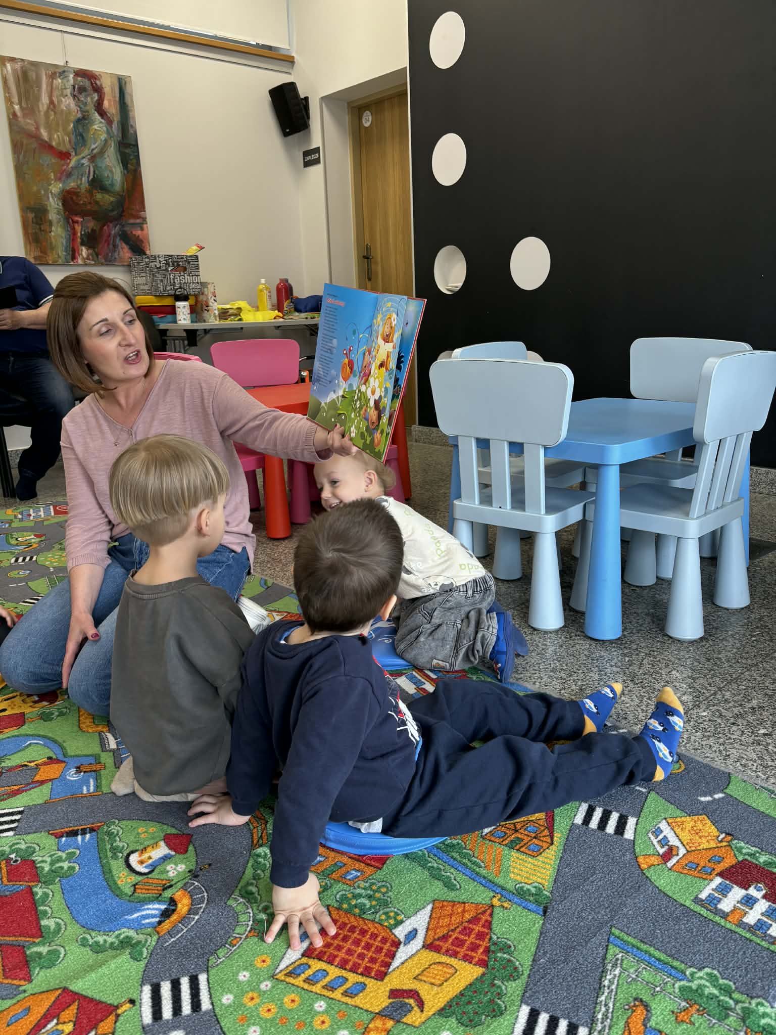 Maluch w bibliotece i motylek