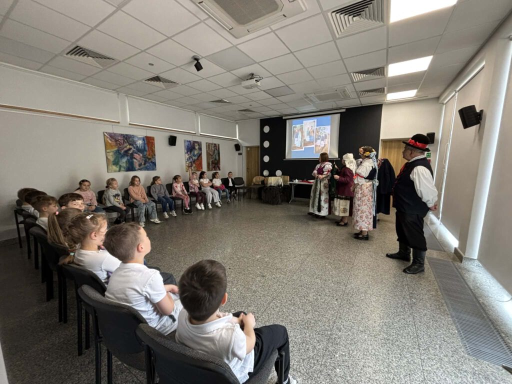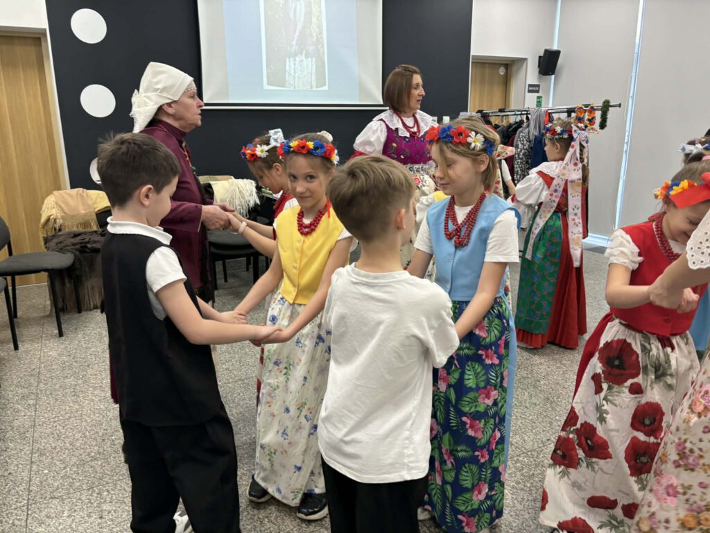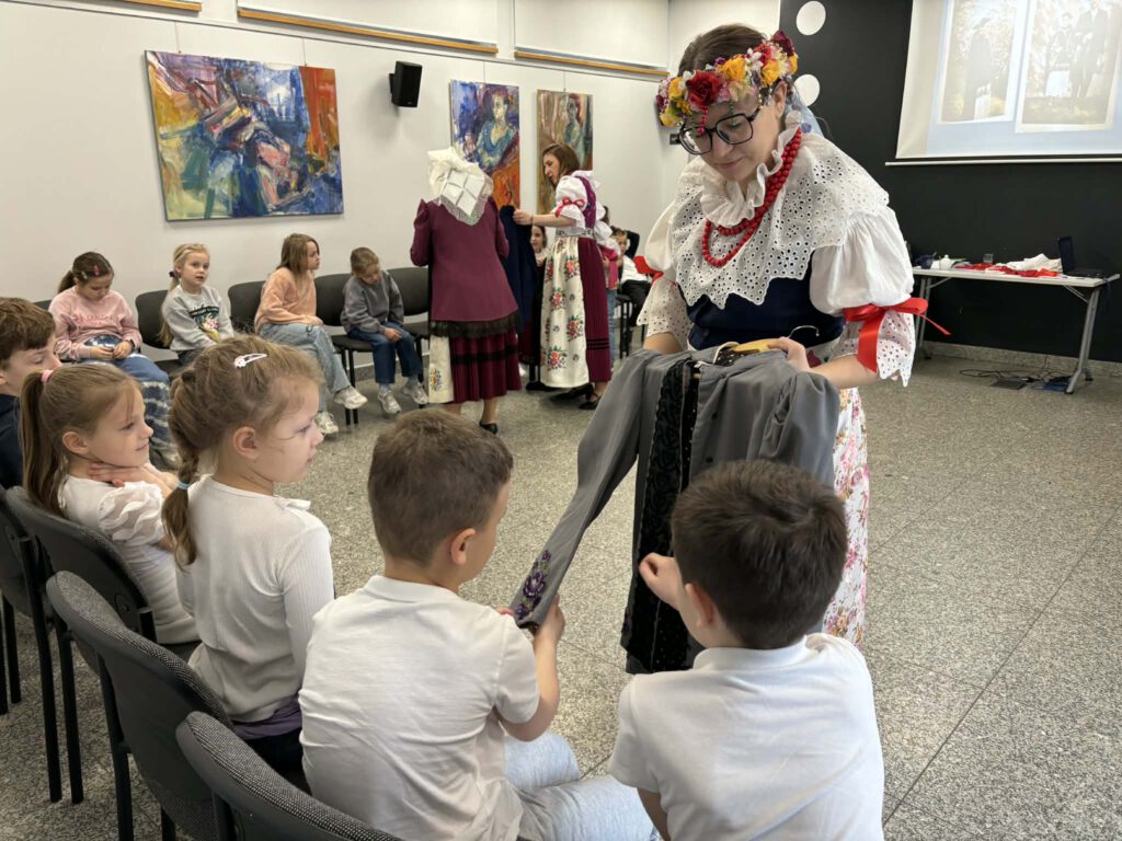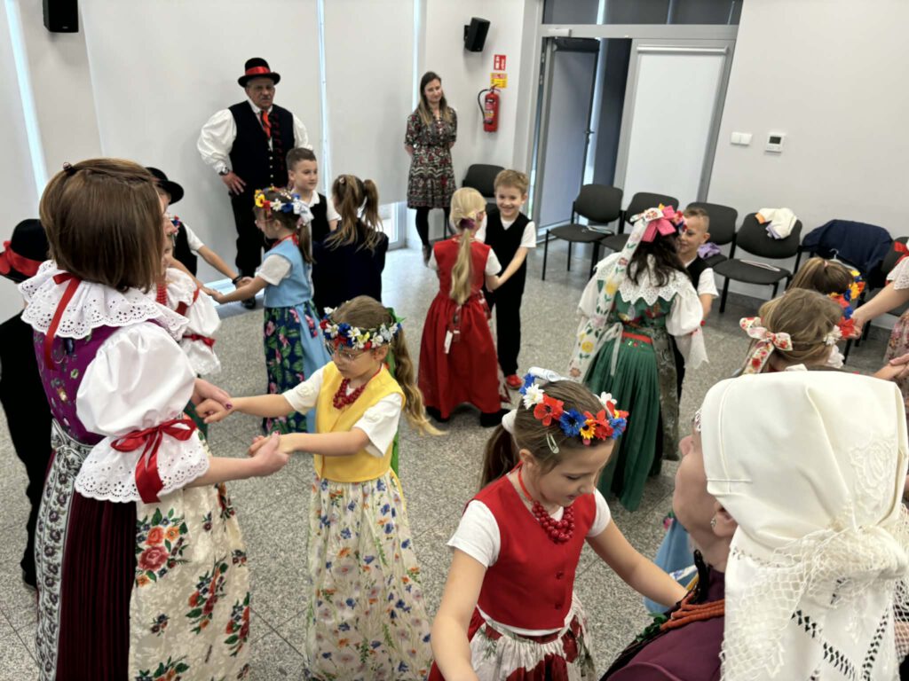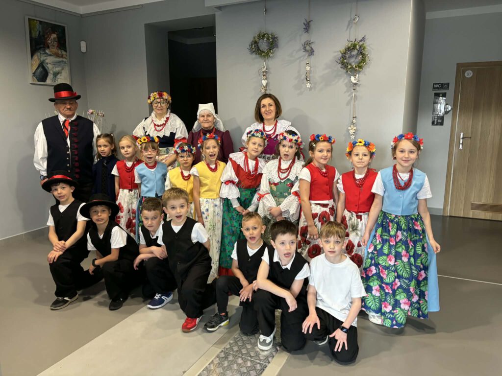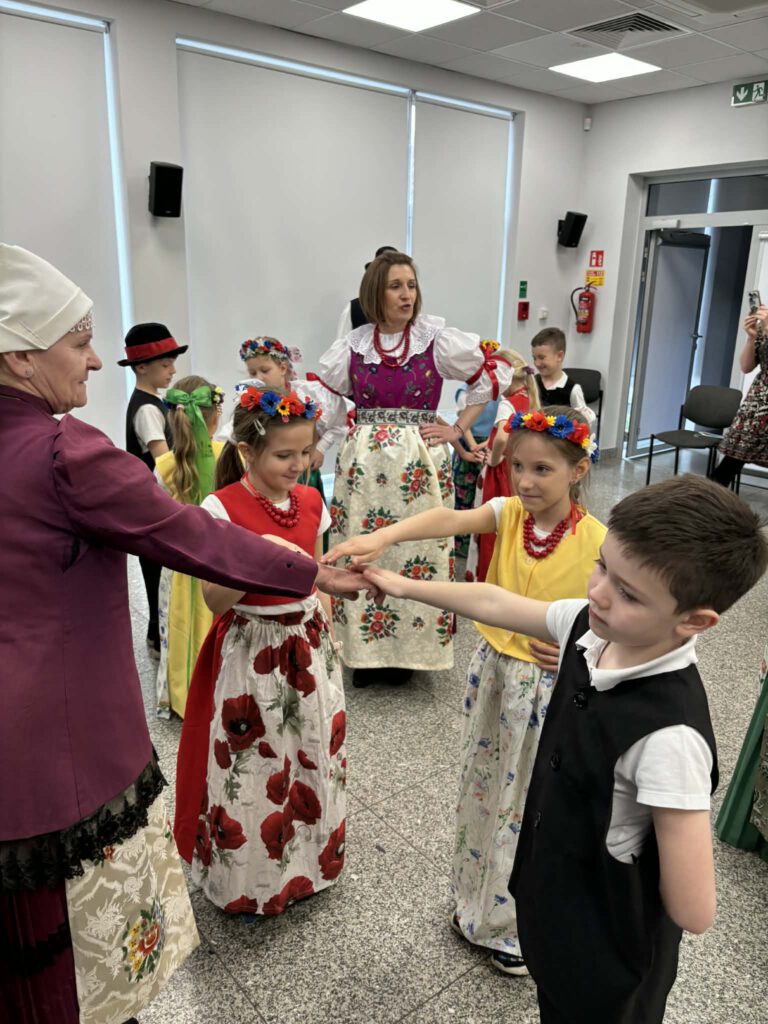 Stroje śląskie i powtórka tańców z klasą I b Szkoła Podstawowa im. Wilhelma Gawlikowicza w Bojszowach Zespół folklorystyczny Bojszowianie