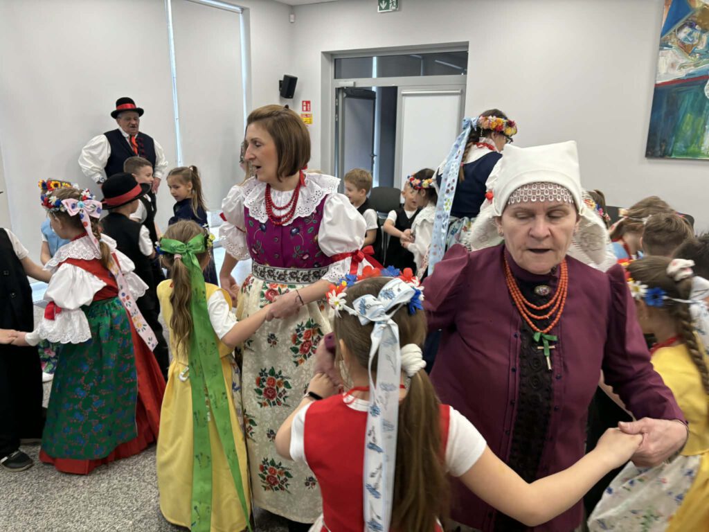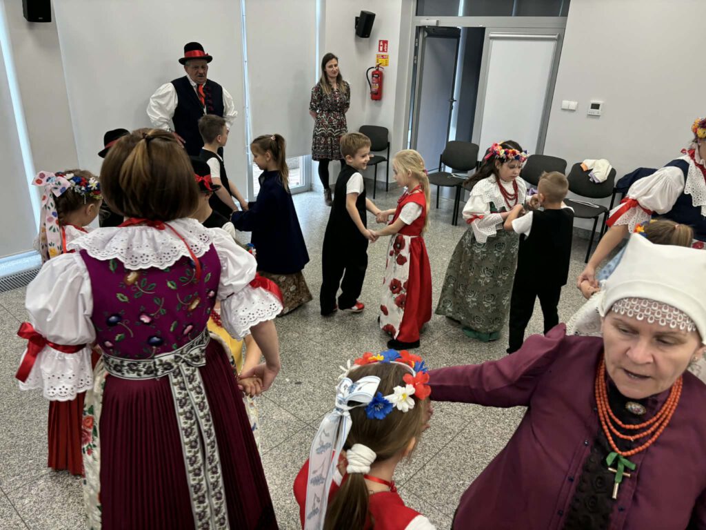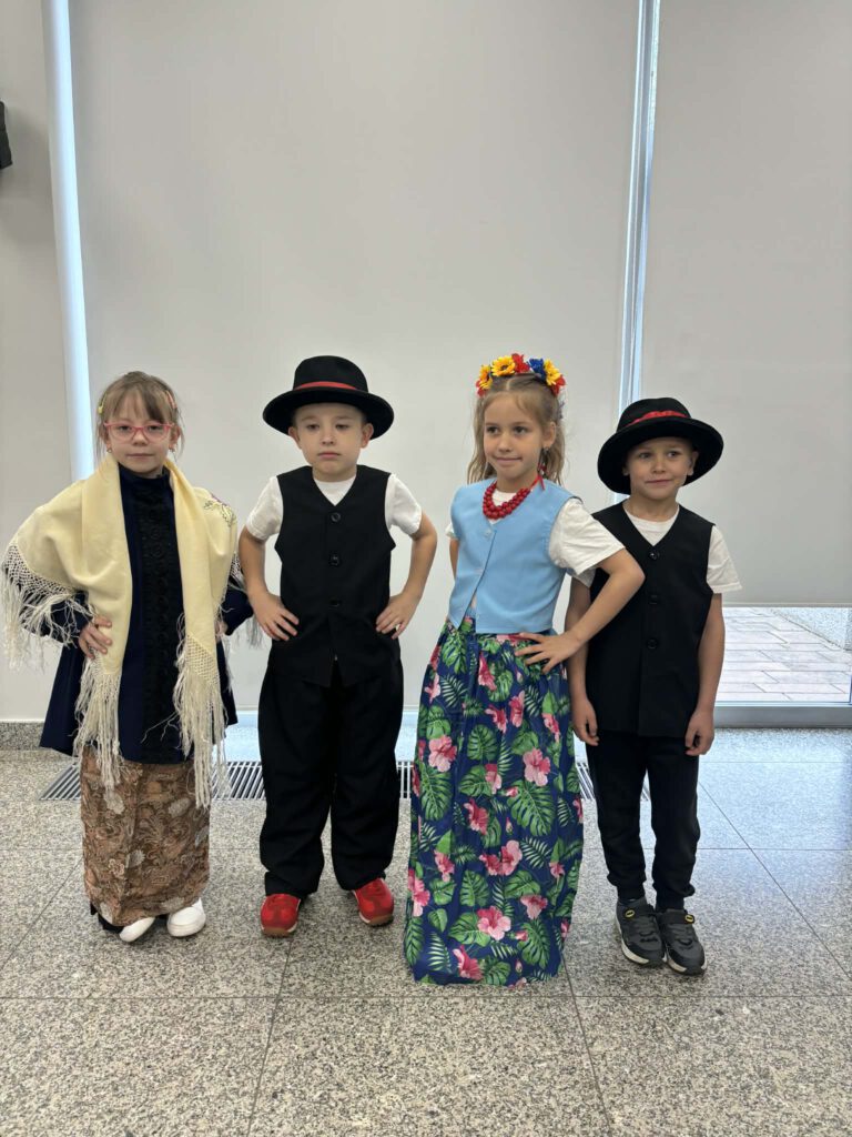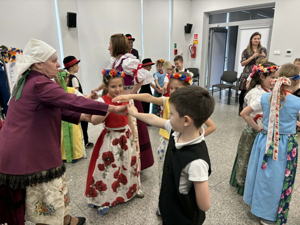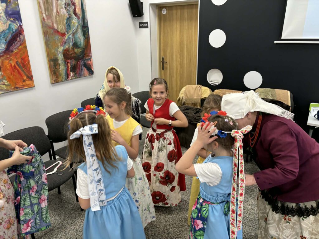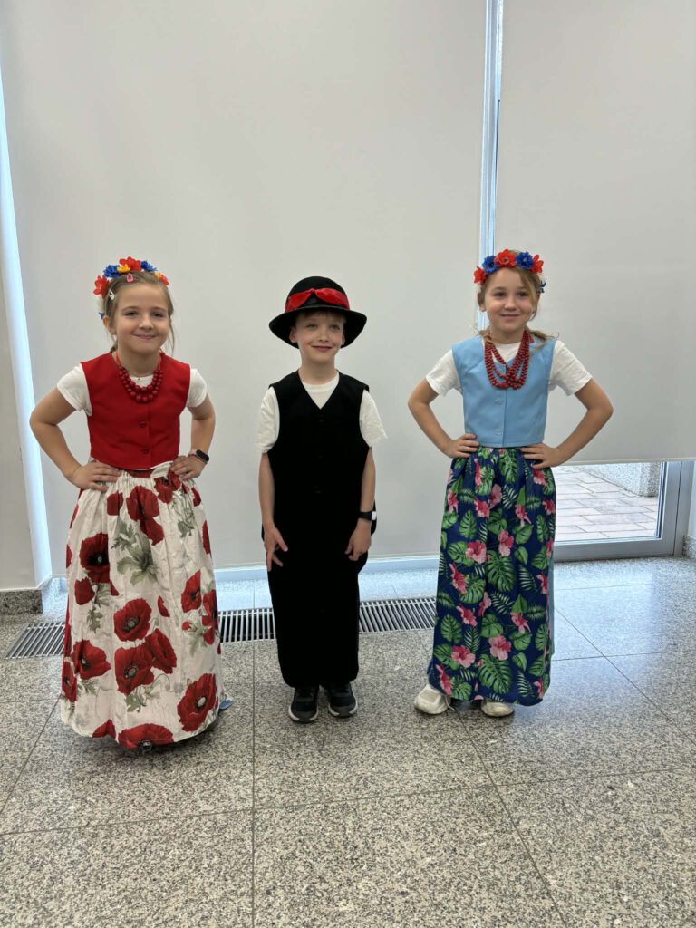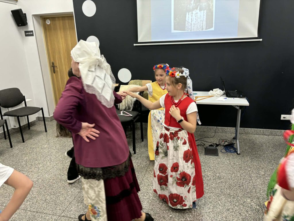 Stroje śląskie i powtórka tańców z klasą I b Szkoła Podstawowa im. Wilhelma Gawlikowicza w Bojszowach Zespół folklorystyczny Bojszowianie