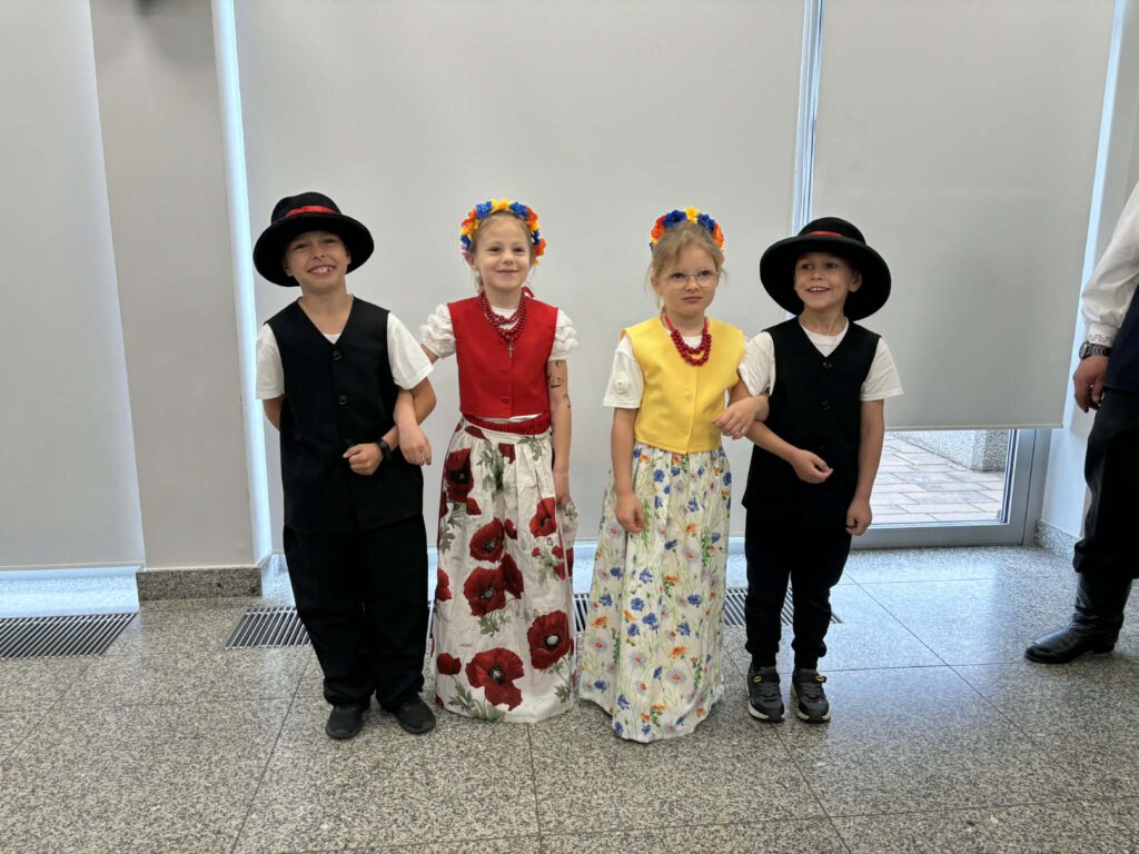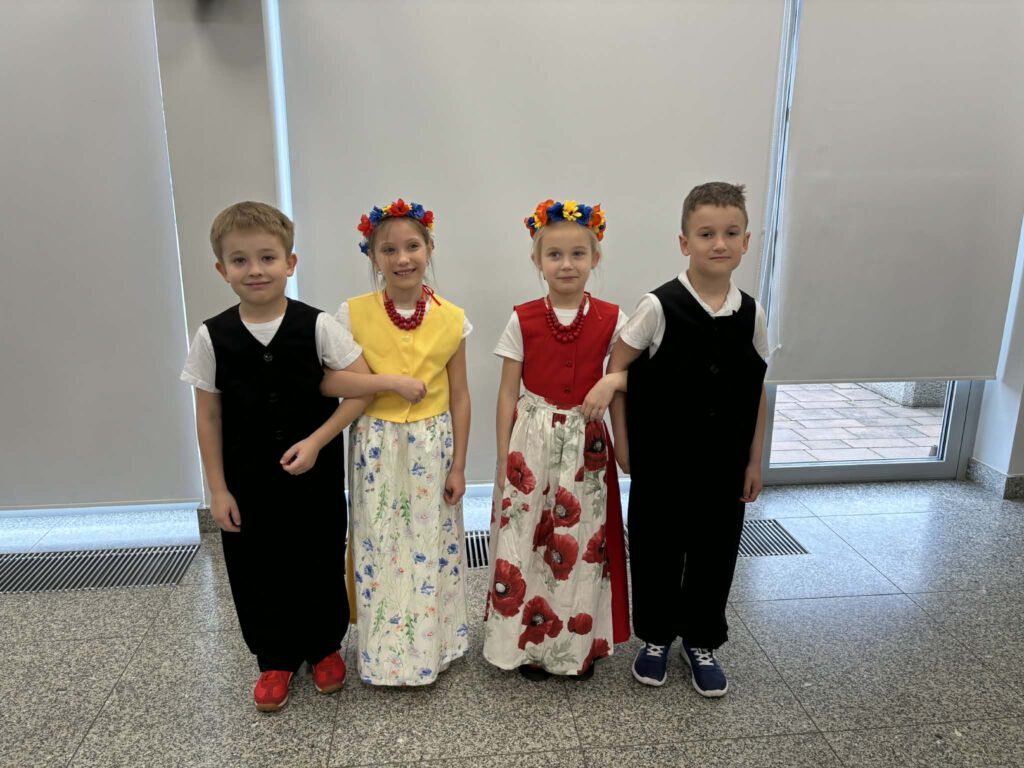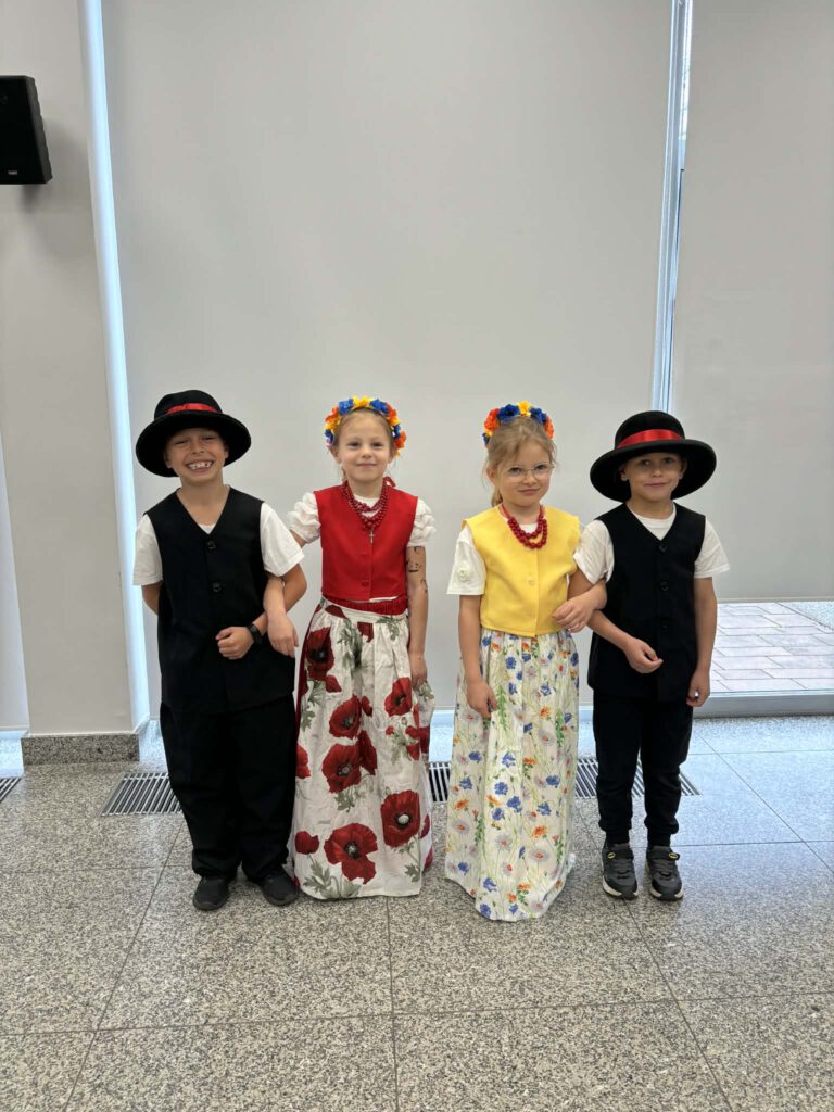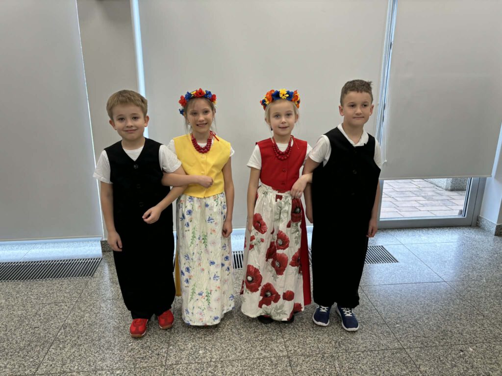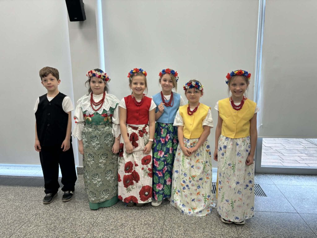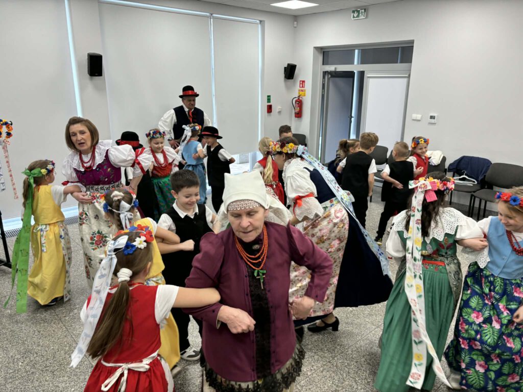 Stroje śląskie i powtórka tańców z klasą I b Szkoła Podstawowa im. Wilhelma Gawlikowicza w Bojszowach Zespół folklorystyczny Bojszowianie