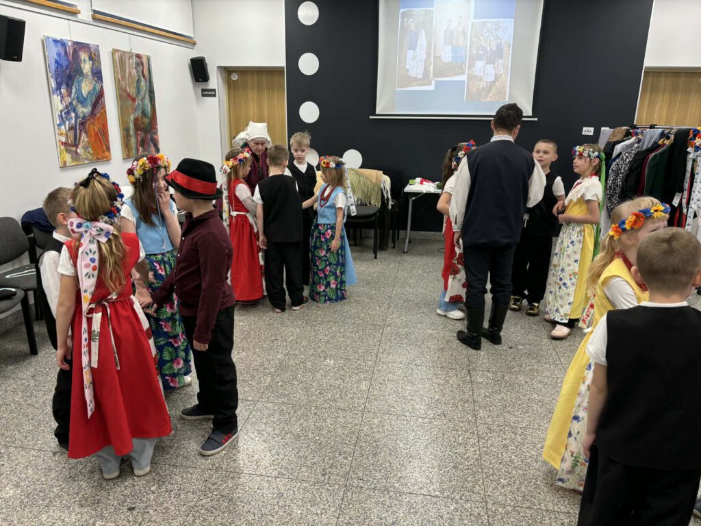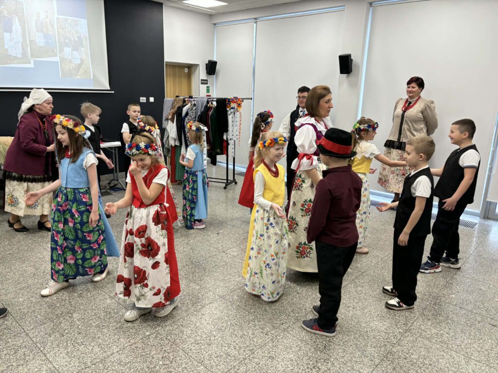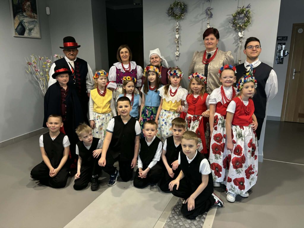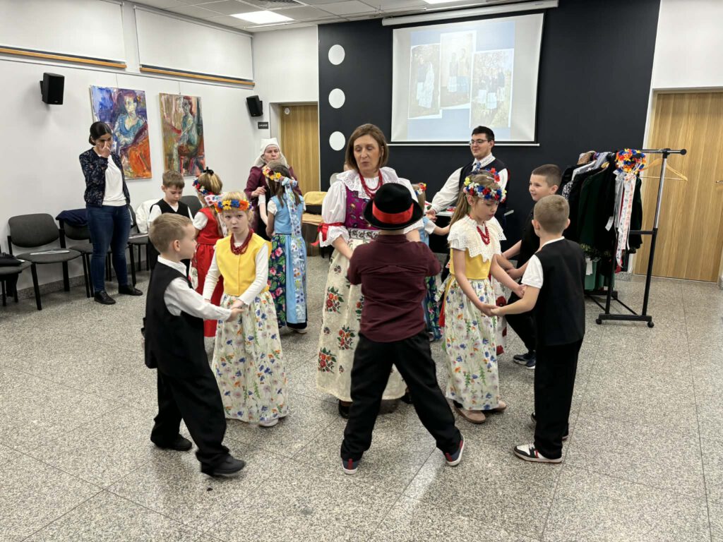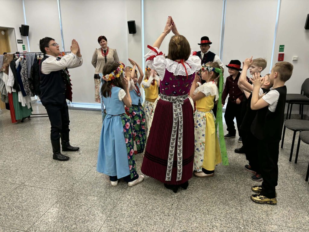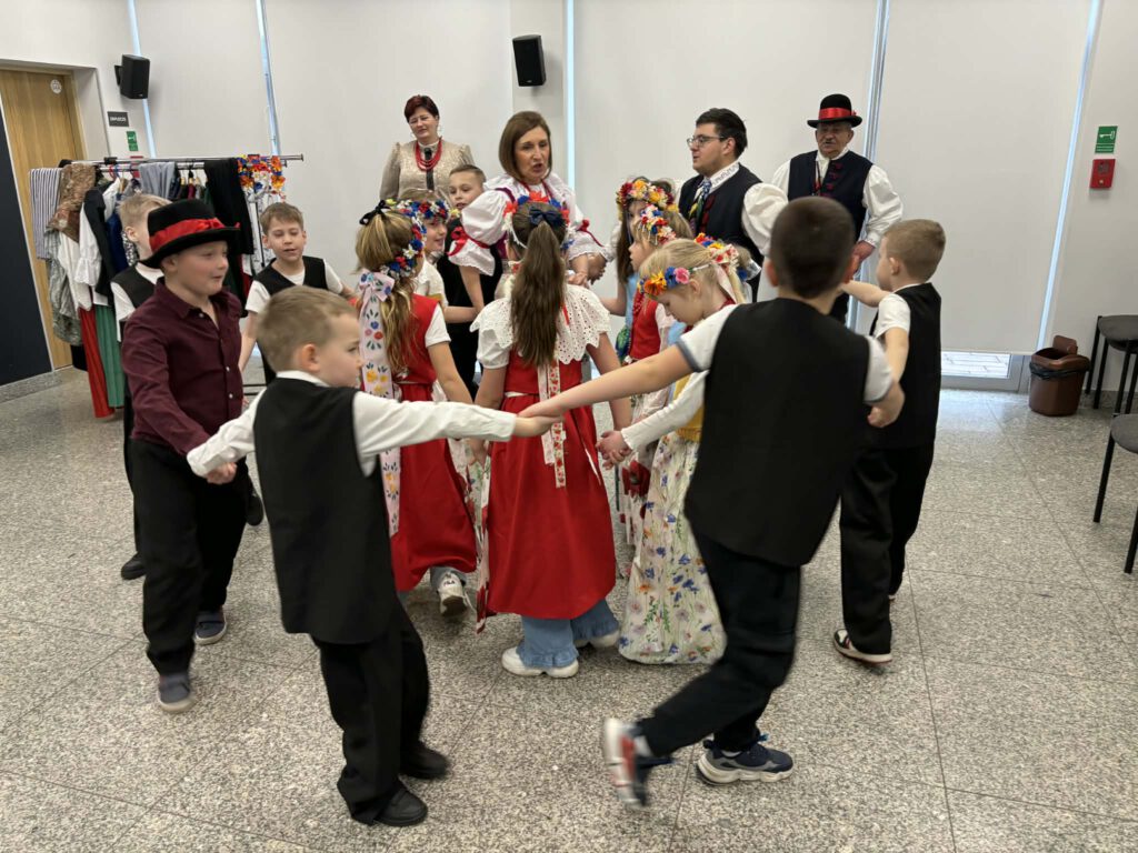stroje śląskie i powtórka tańców. Szkoła Podstawowa im. Wilhelma Gawlikowicza w Bojszowach i zespół folklorystyczny Bojszowianie