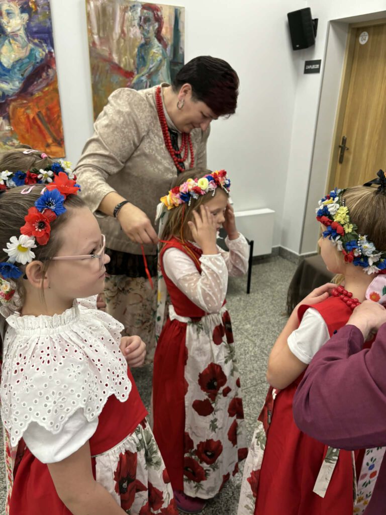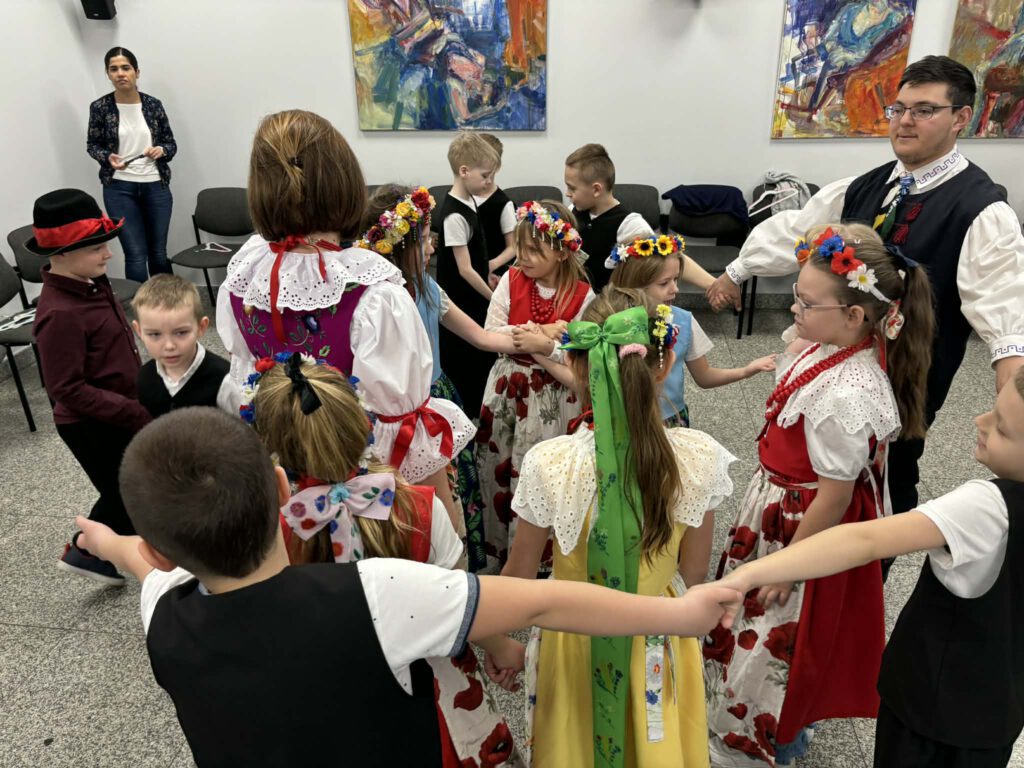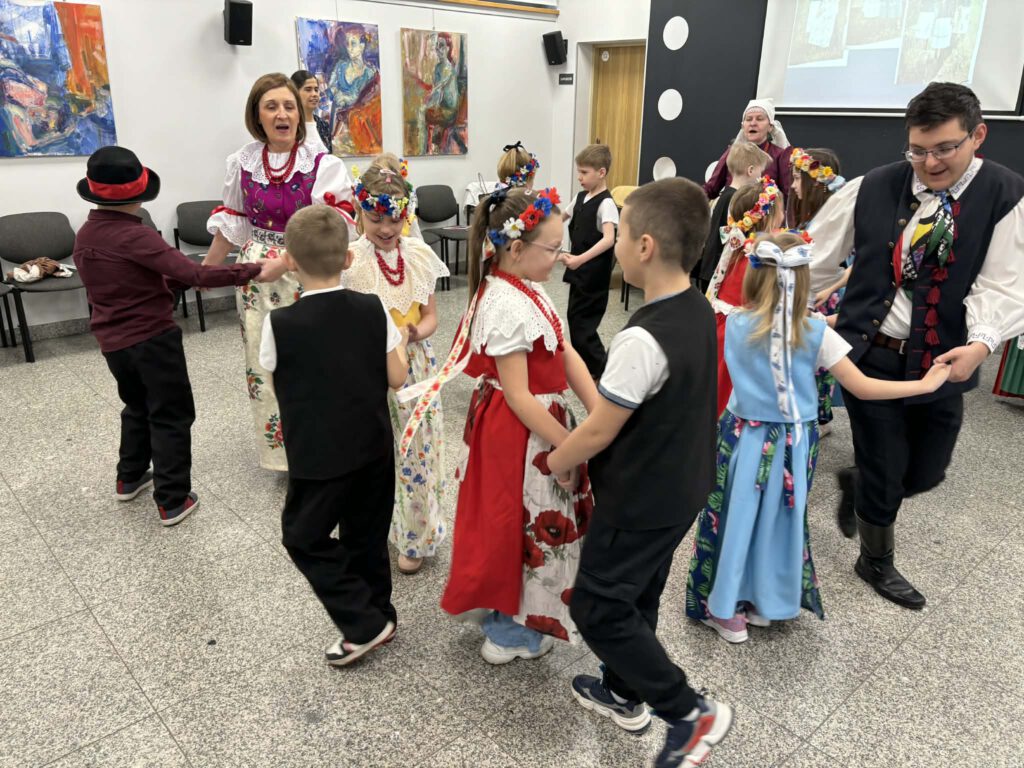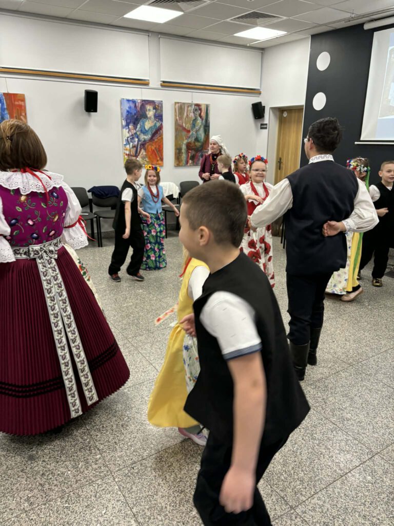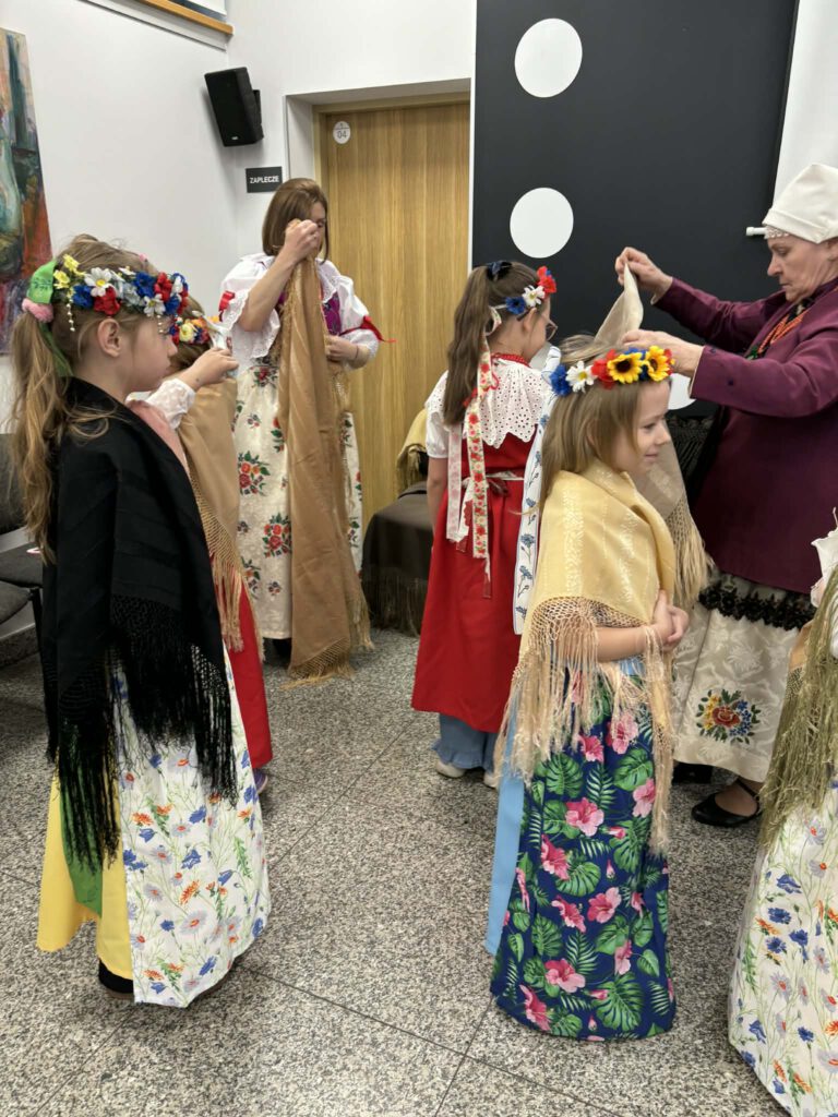 stroje śląskie i powtórka tańców. Szkoła Podstawowa im. Wilhelma Gawlikowicza w Bojszowach i zespół folklorystyczny Bojszowianie