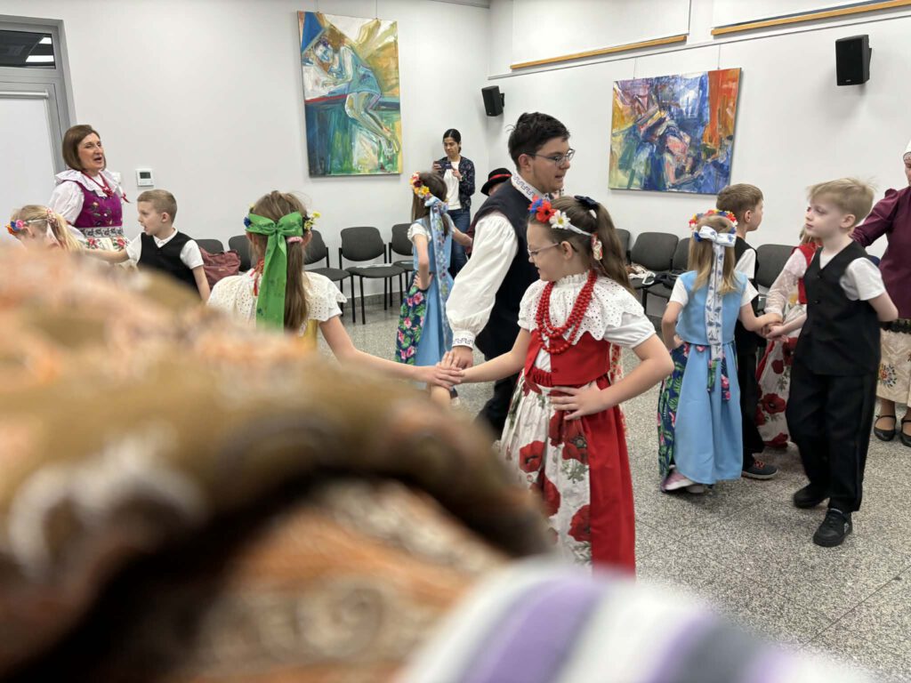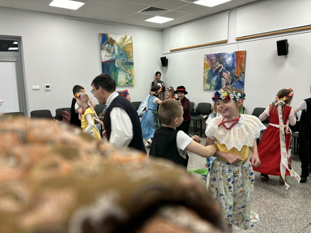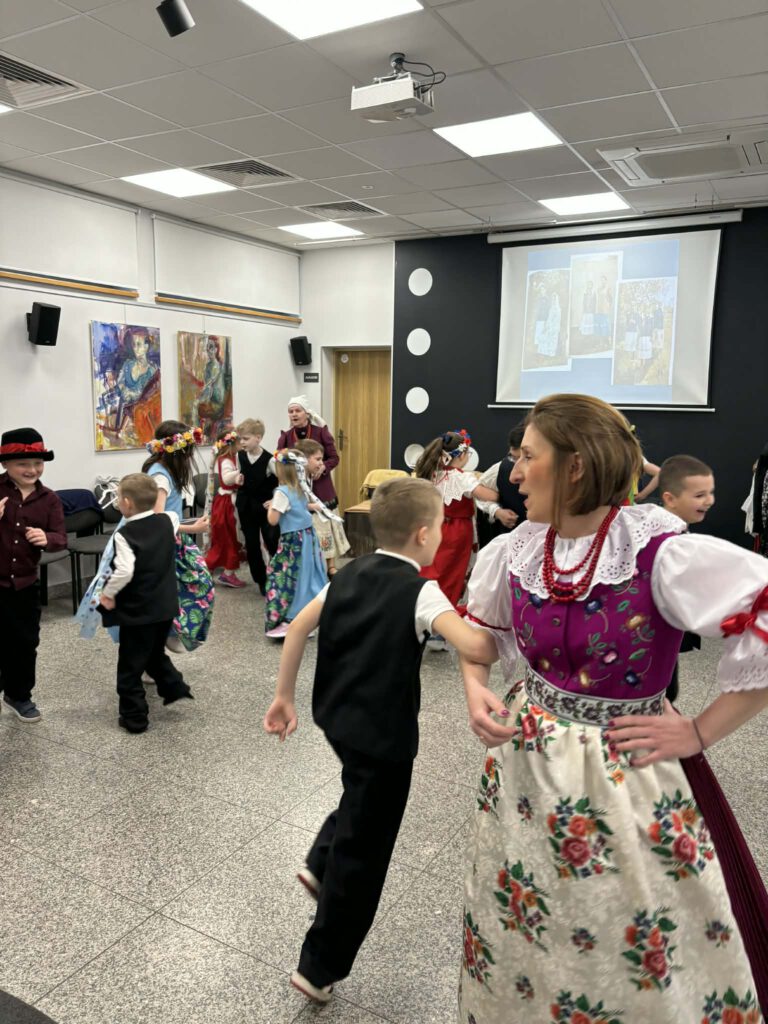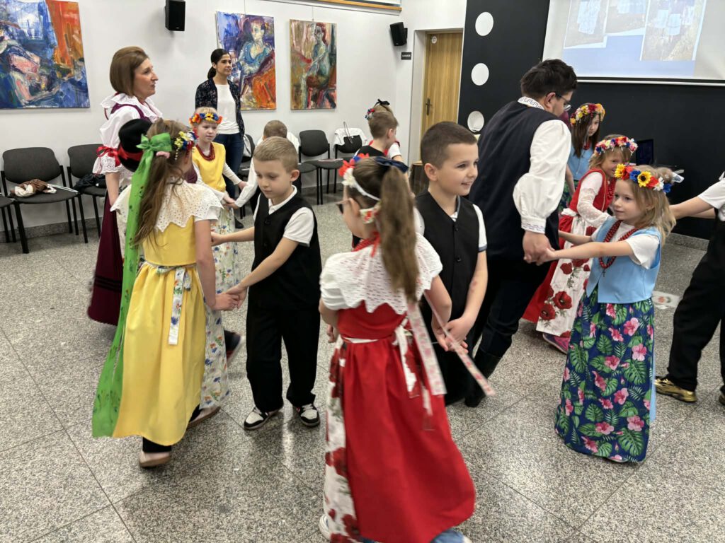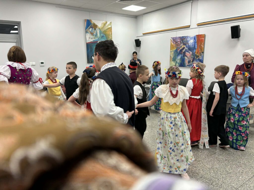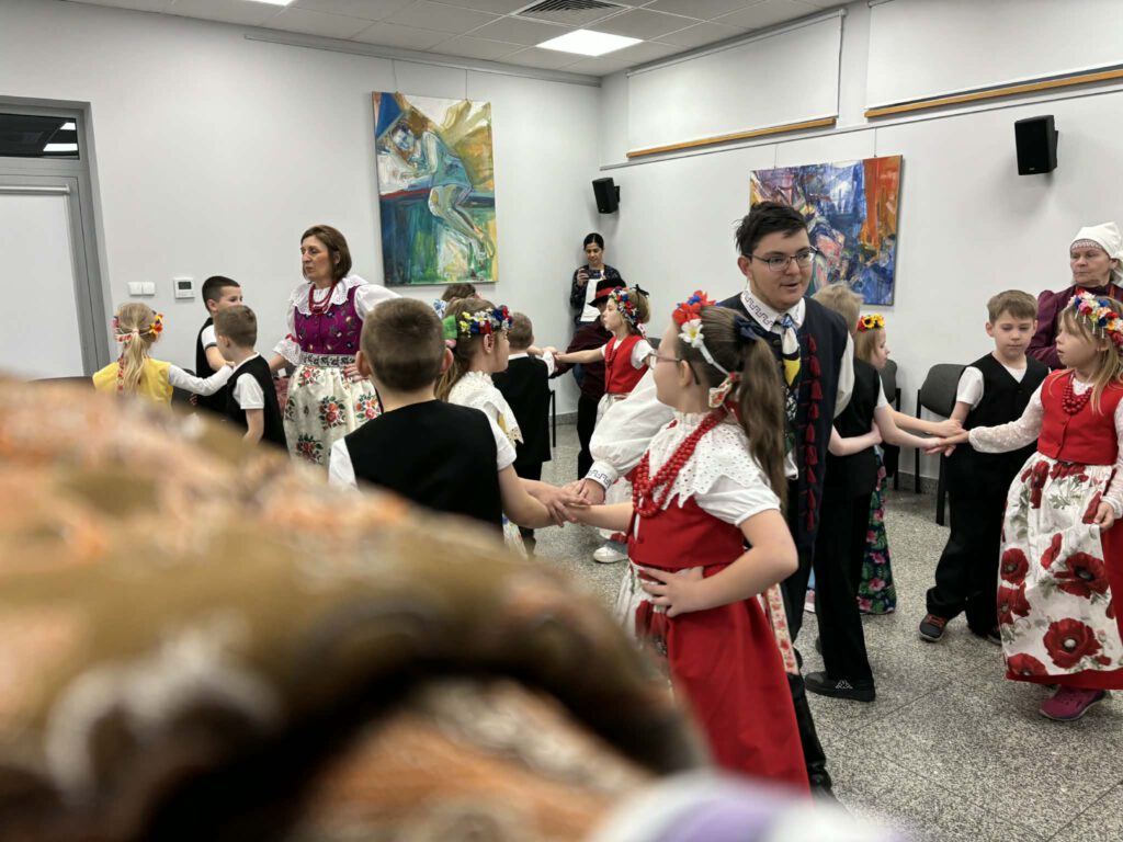 stroje śląskie i powtórka tańców. Szkoła Podstawowa im. Wilhelma Gawlikowicza w Bojszowach i zespół folklorystyczny Bojszowianie